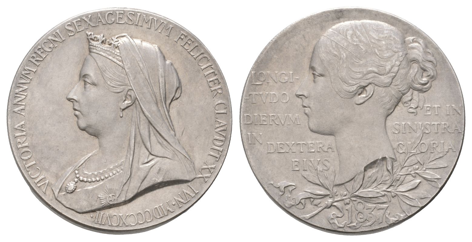 Veiled head of Victoria to left / Young head of Victoria to left over olive branch. W & E 3000A.4; BHM 3506; E 1817a. 9.71gr, 25mm, 12h