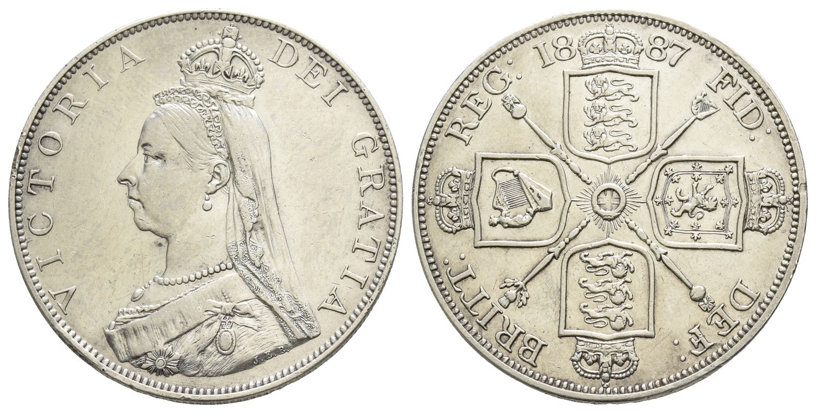 Great Britain. Hanover, Victoria AR Double Florin. Dated 1887. London mint.