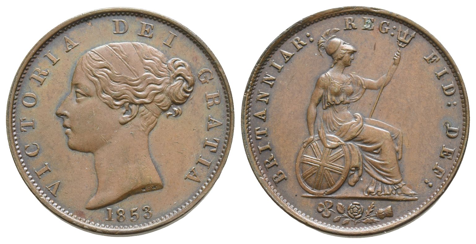 Back to previous pageGreat Britain. Hanover, Victoria CU Halfpenny. Dated 1853. Royal mint.