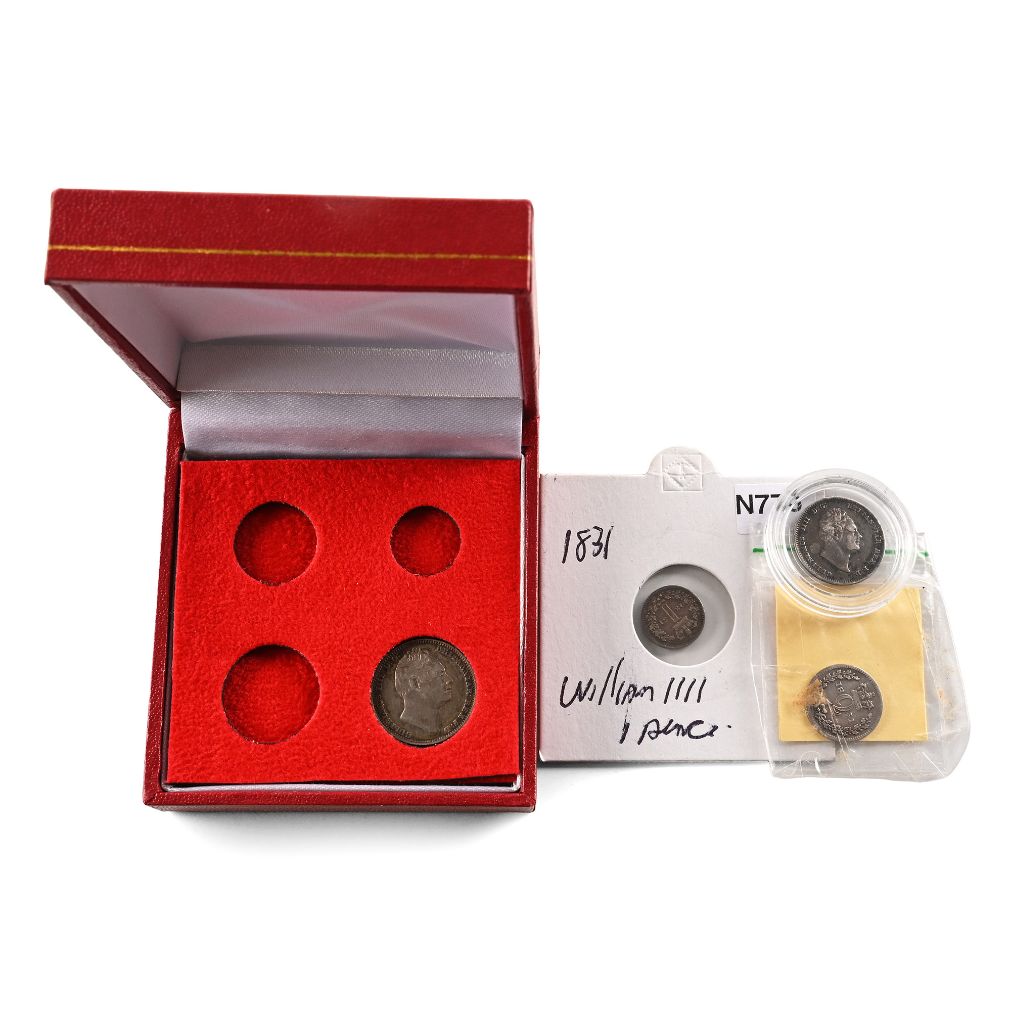 Comprising: Set of Four (1835), Three (1837), Two (1831) and One (1831) Penny denominations in a Maundy coin box. SCBC 3840. 51.67gr total.