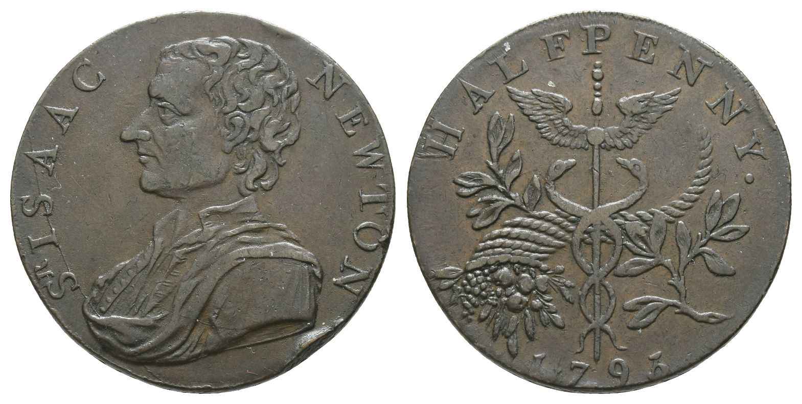 Great Britain. Sir Isaac Newton, Middlesex AE Halfpenny Token. Dated 1793.