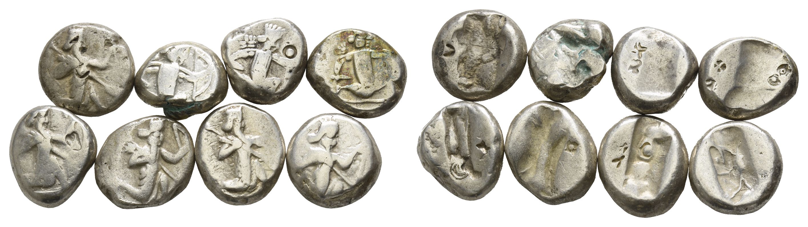Group of Eight [8] AR Sigloi of Achaemenid Empire. 5th-4th century BC.