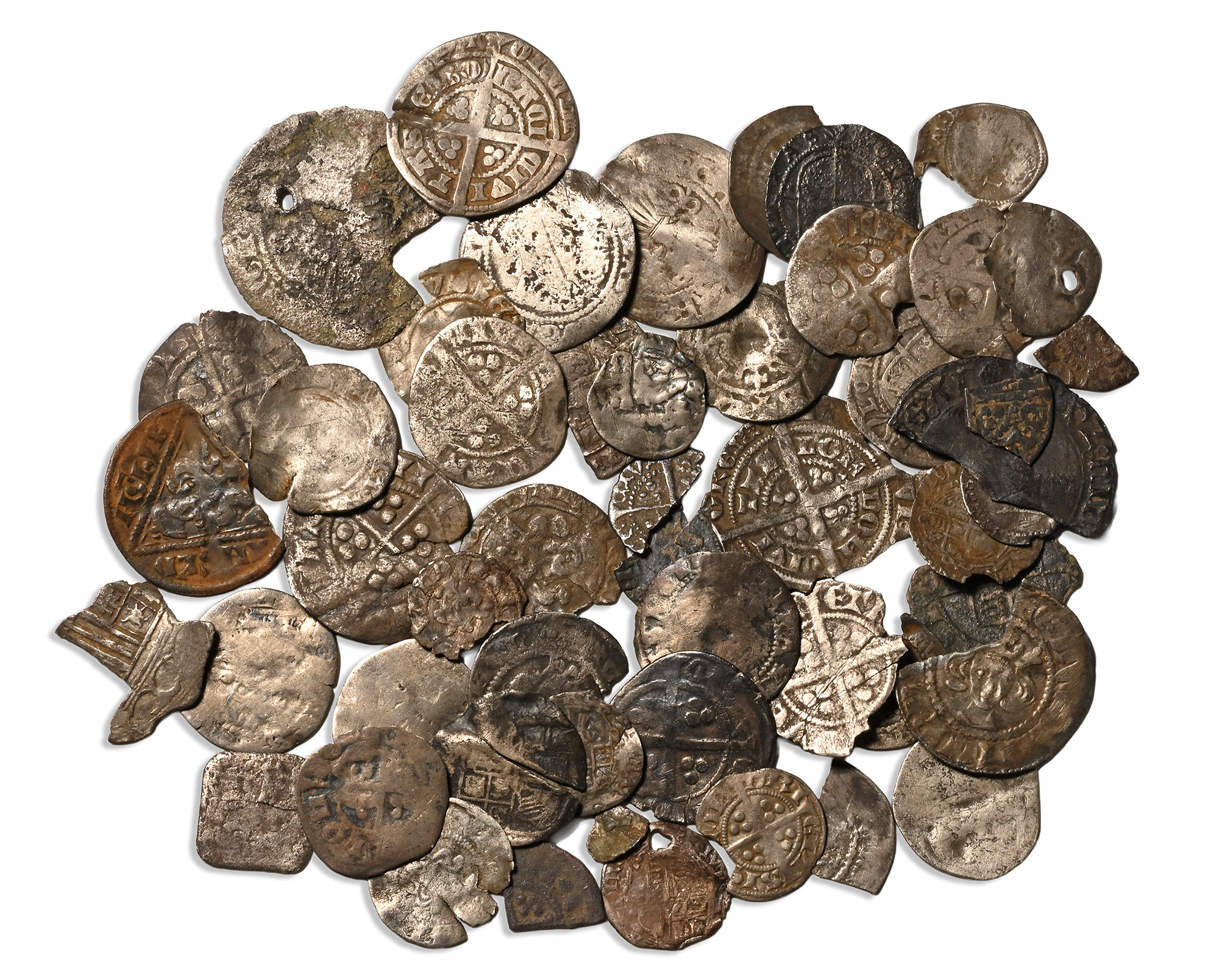 Group of Fifty [50] English AR Hammered Coins and Fragments. 13th-17th century AD.