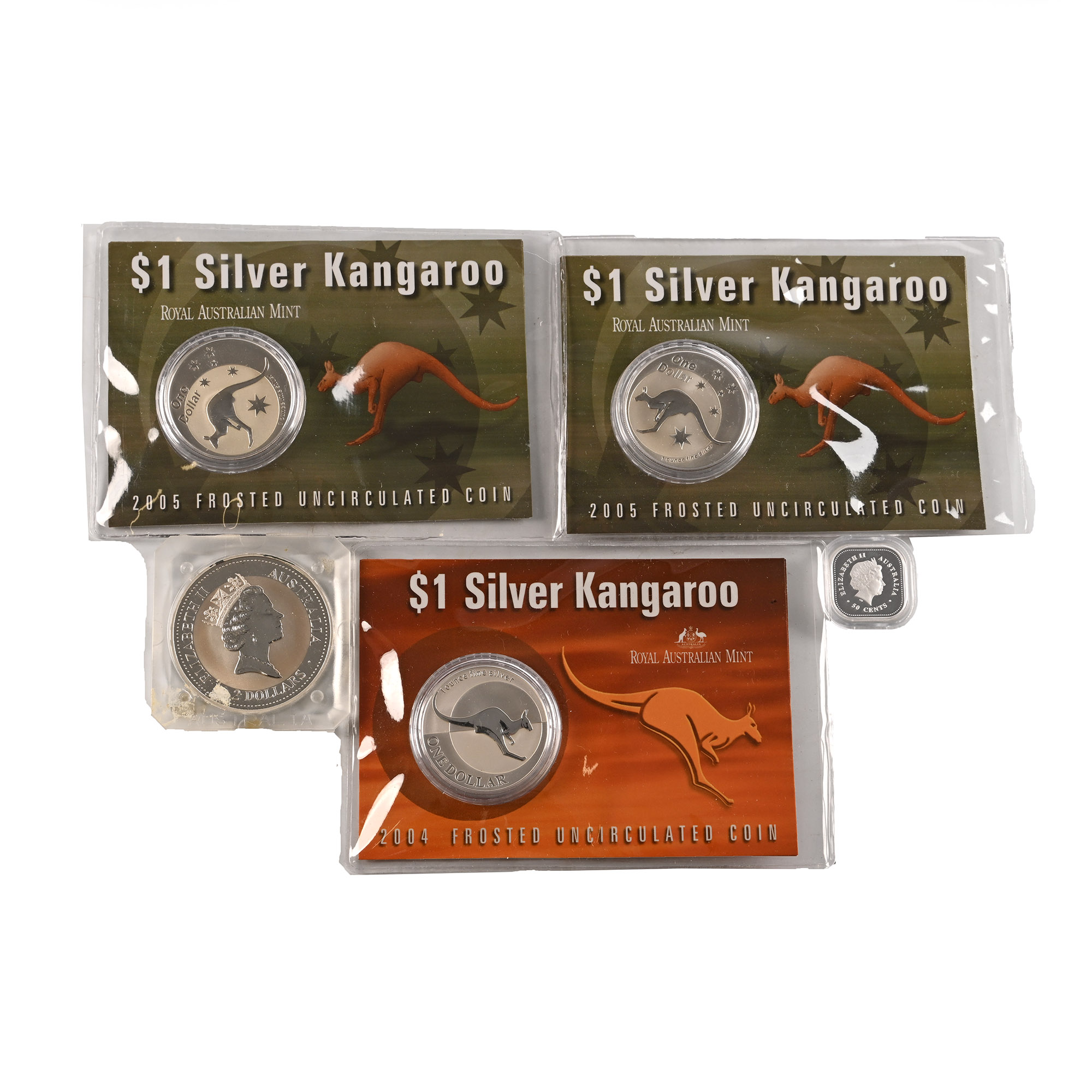 Group of Five [5] Australia, Kangaroo and Kookaburra AR Coins. 1993-2005.