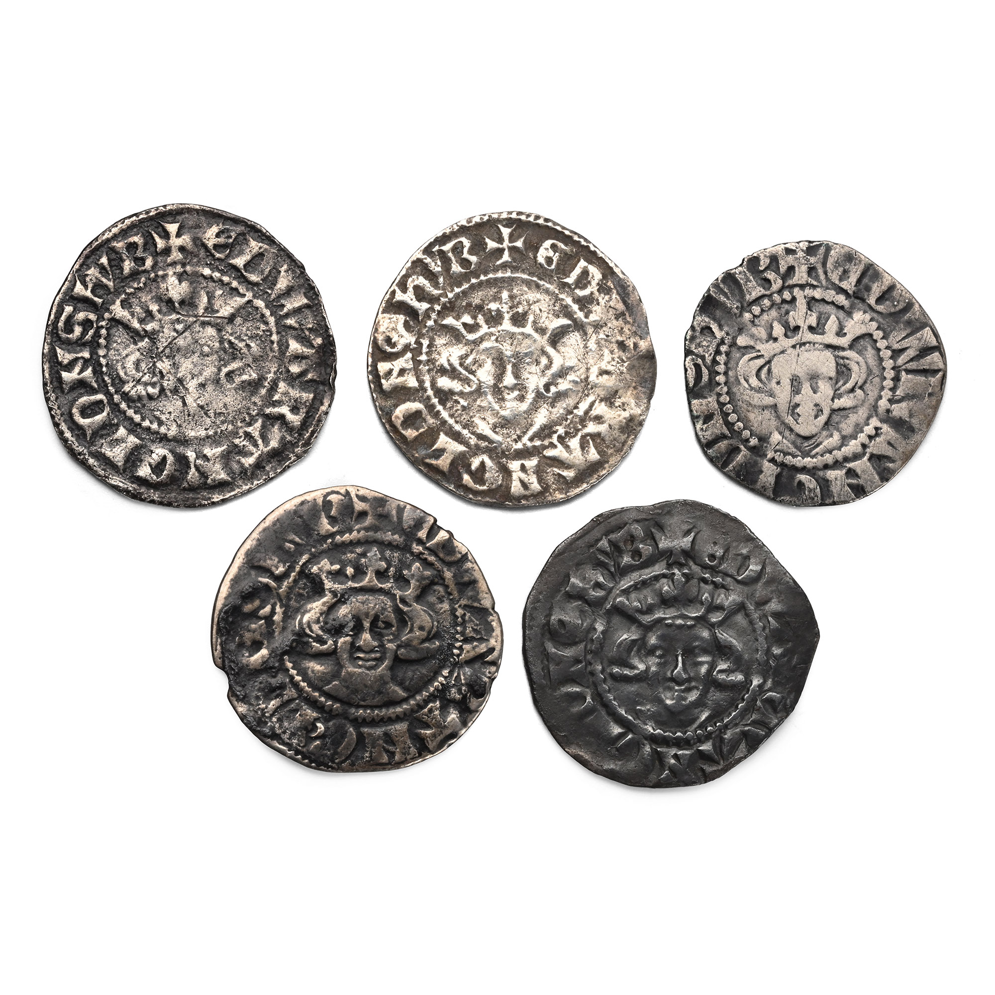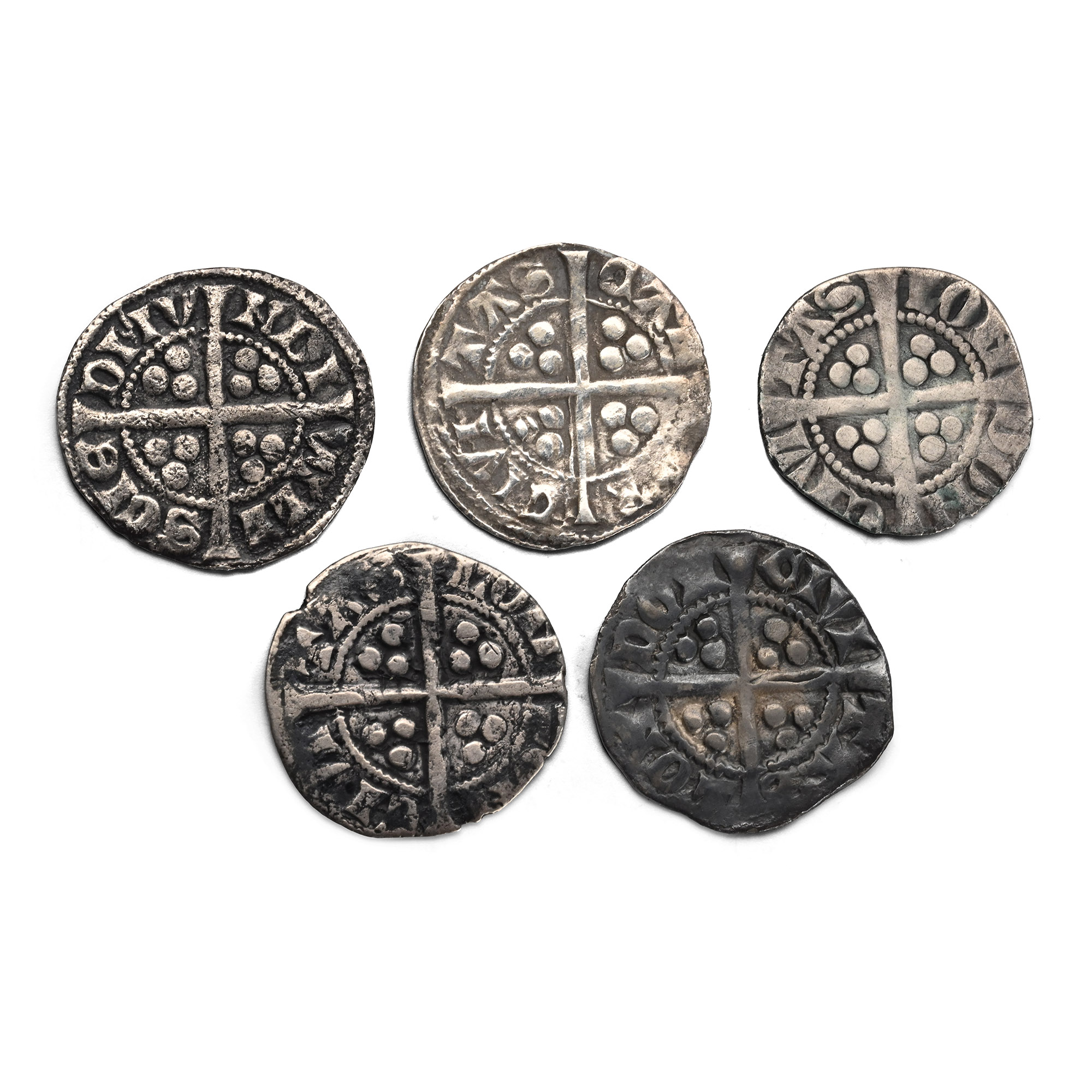 Group of Five [5] Plantagenet, Edward I AR Pennies. 1272-1307.