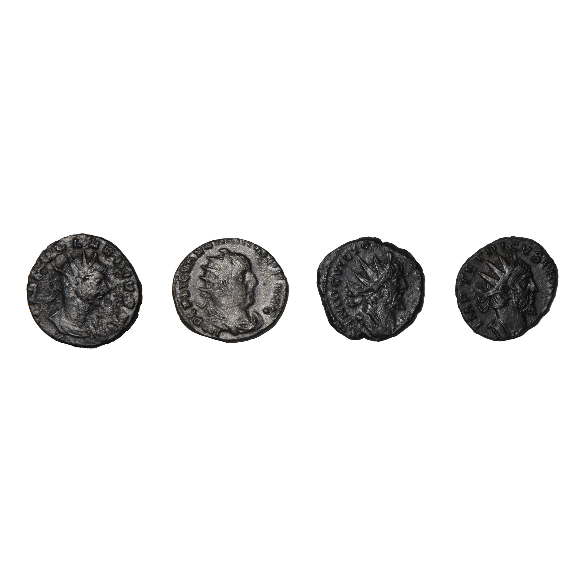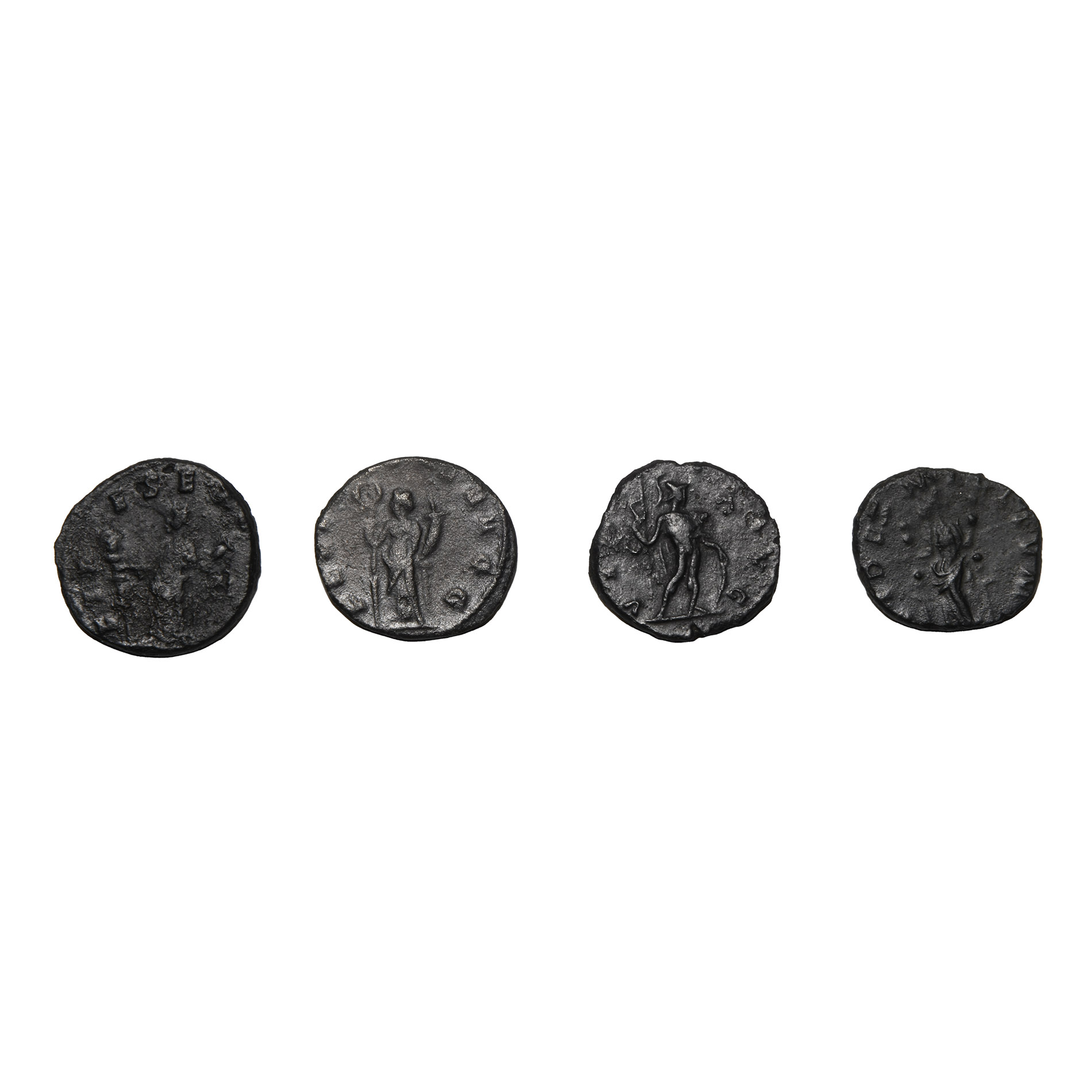 Mixed group with types of Valerian I (AD 253-260), Victorinus (AD 268-270), Claudius II Gothicus (AD 268-270), and Tetricus I (AD 270-273). 12.05gr total, 18-19mm.