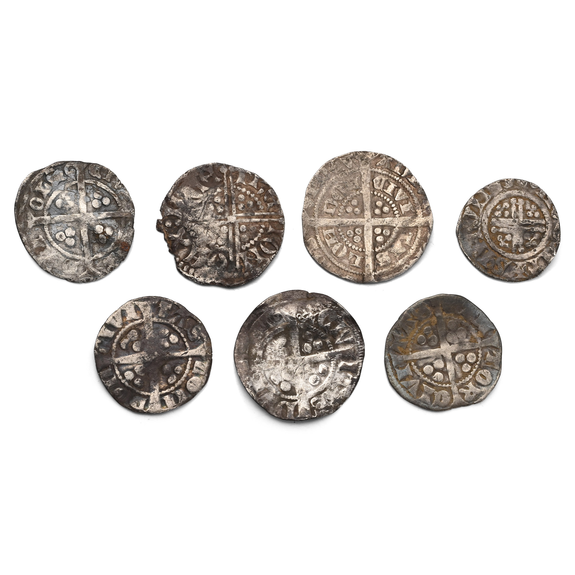 Group of Seven [7] Plantagenet AR Hammered Coins. 13th-14th century AD.