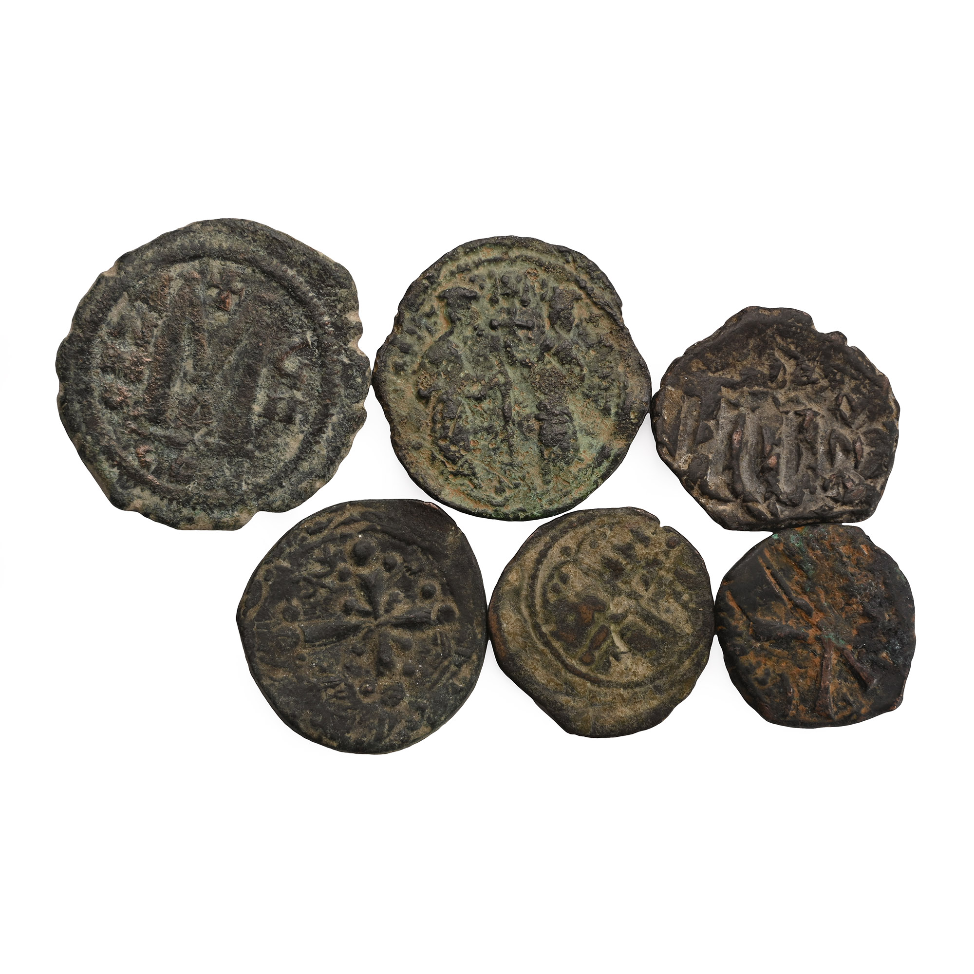 Group of Six [6] Byzantine and Other AE Coins. 6th-11th century AD.