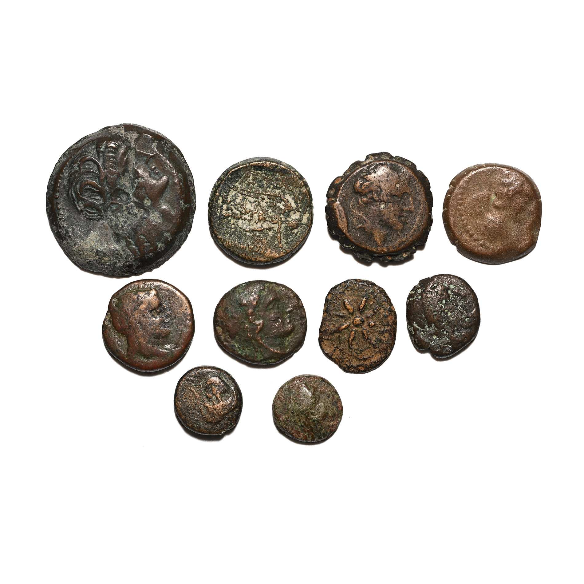 Group of Ten [10] AE Greek Coins. 3rd-1st century BC.