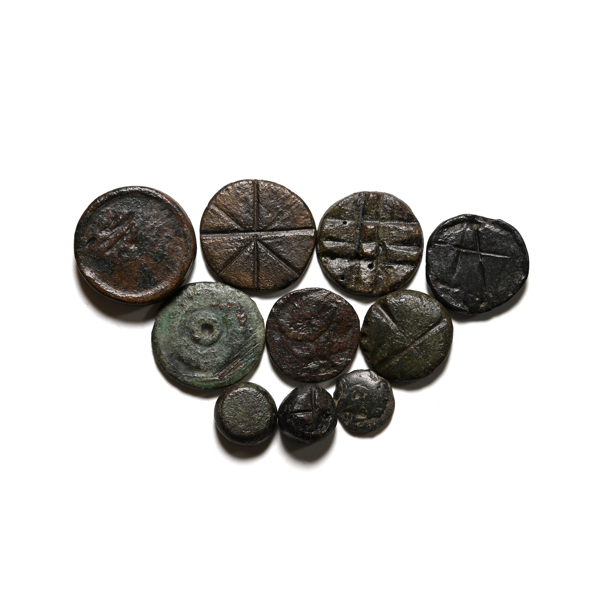 Group of Ten [10] Byzantine AE Weights. Circa 6th-12th century AD.