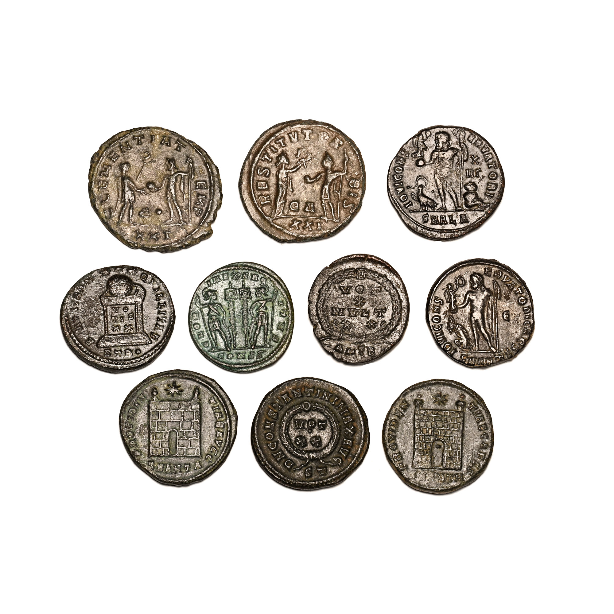 Group of Ten [10] Roman Imperial AE Coins. Circa 3rd-4th century AD.