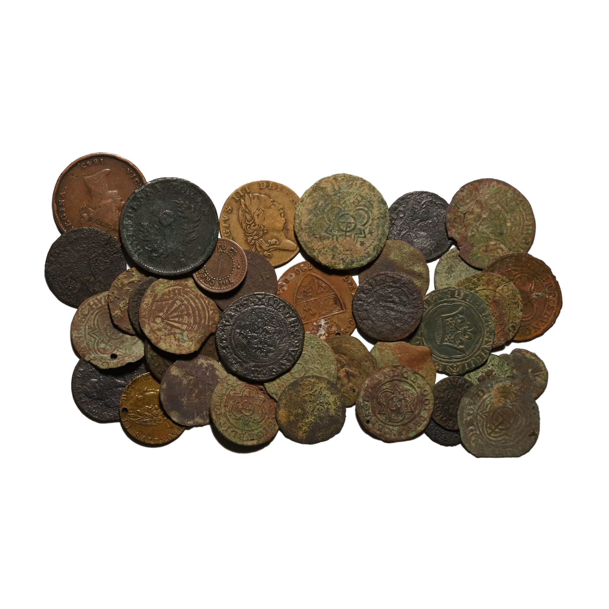 Group of Thirty-Seven [37] AE Tokens. 17th-19th century AD.