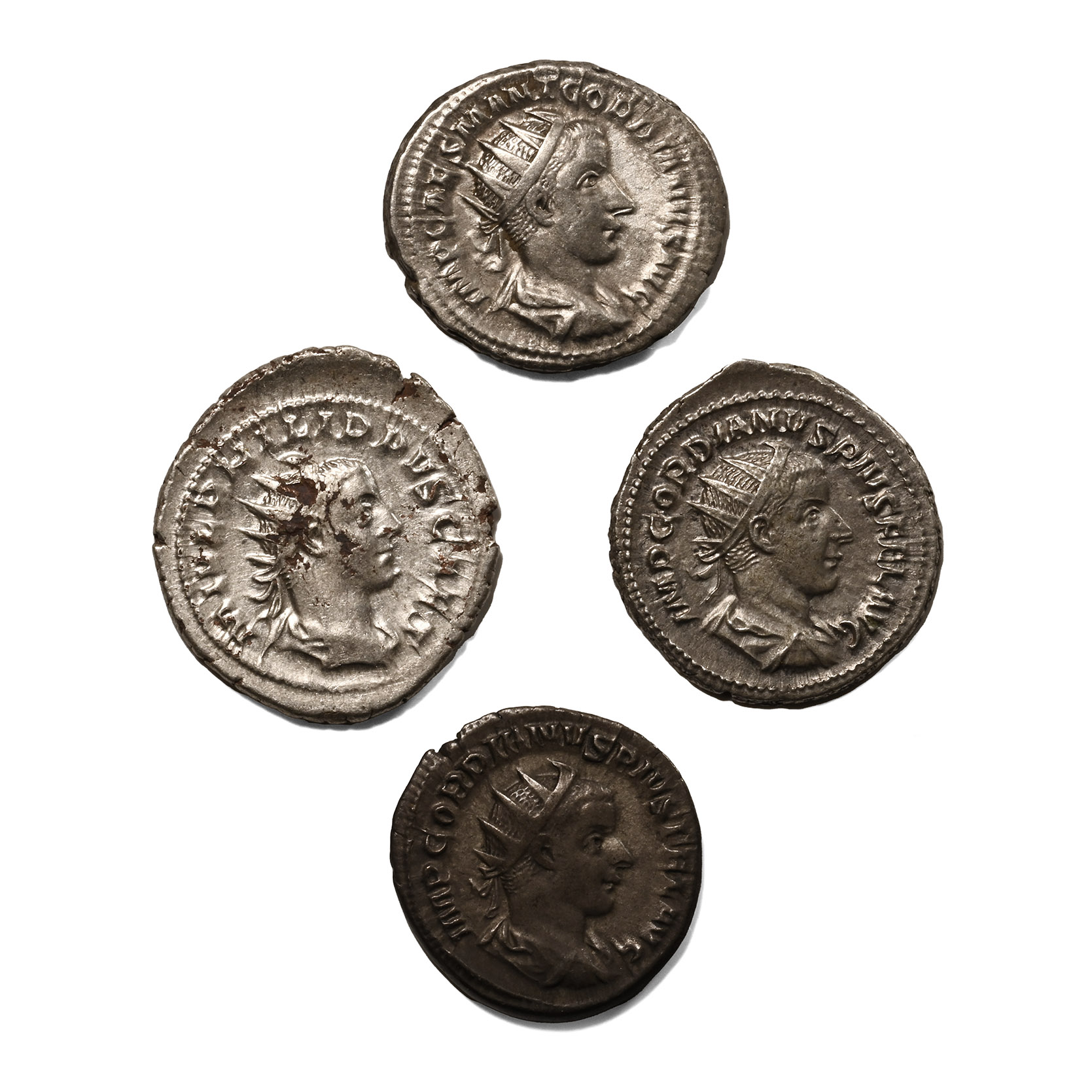 Three antoniniani of Gordian III (AD 238-244) and one of Philip II, as Caesar (AD 244-247).