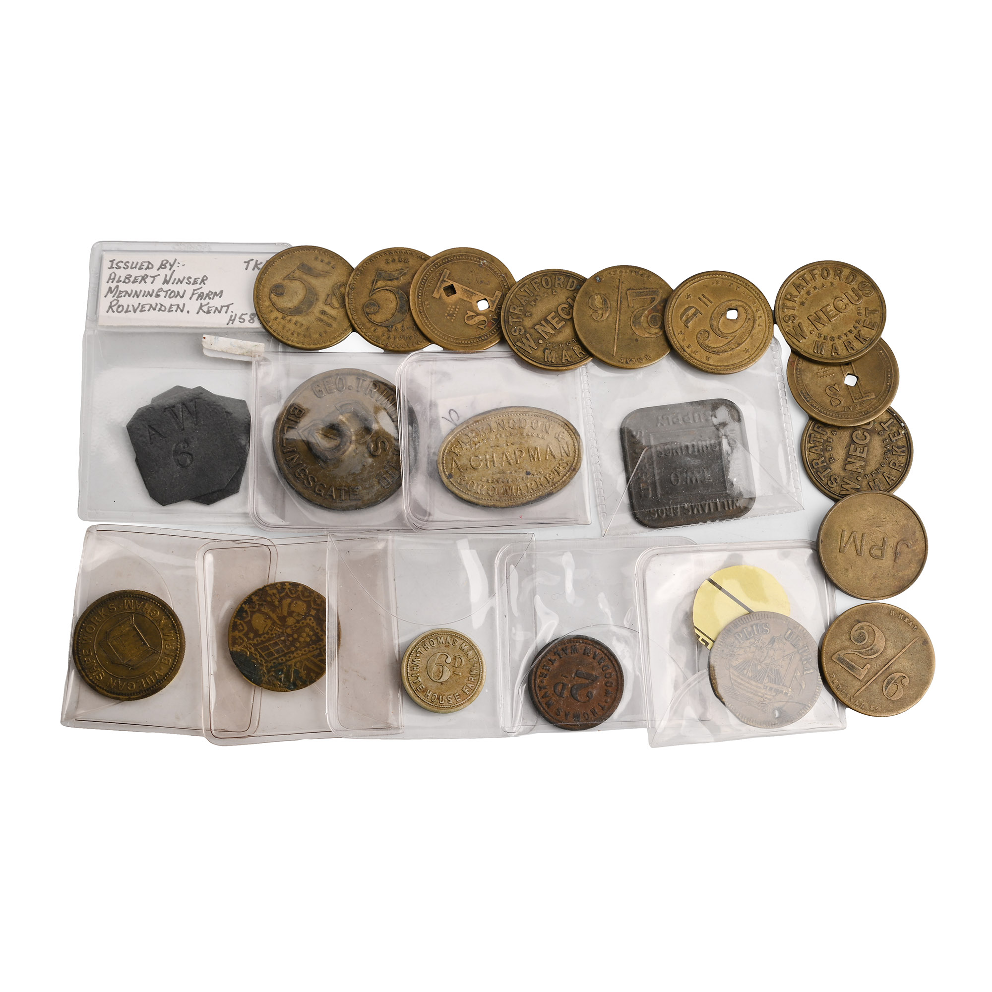 Back to previous pageGroup of Twenty-One [21] AE Tokens. Early 20th century AD.