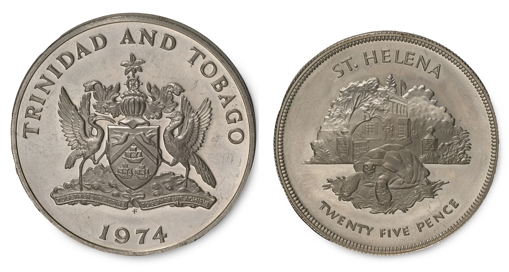 Trinidad & Tobago AR Five Dollars and St. Helena AR Twenty Five Pence. 57.79gr total.