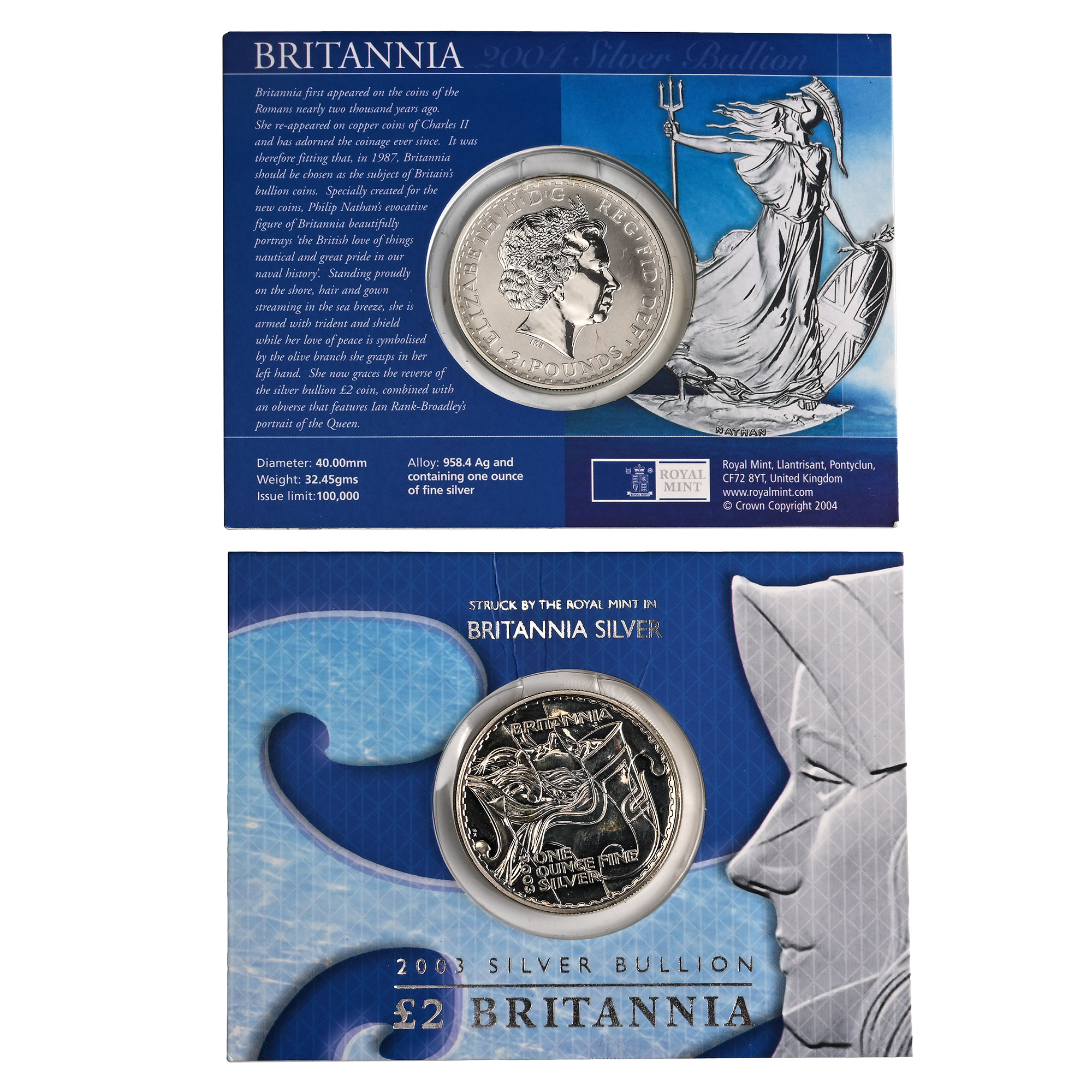 Two Silver Bullion Britannia struck by the Royal Mint. 82gr total.