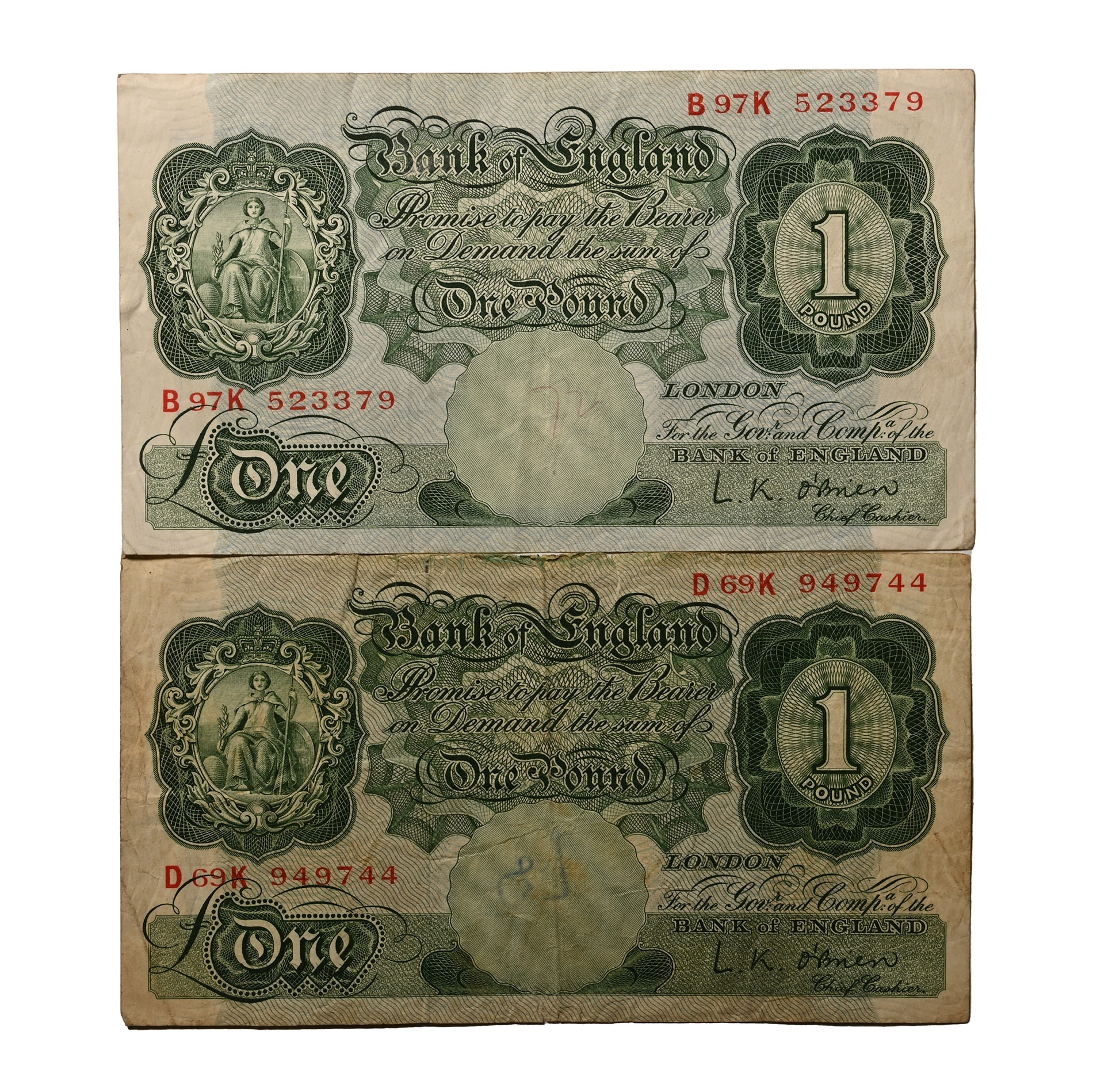 Group of Two [2] England, Elizabeth II One Pound Banknotes. 1928-1948.