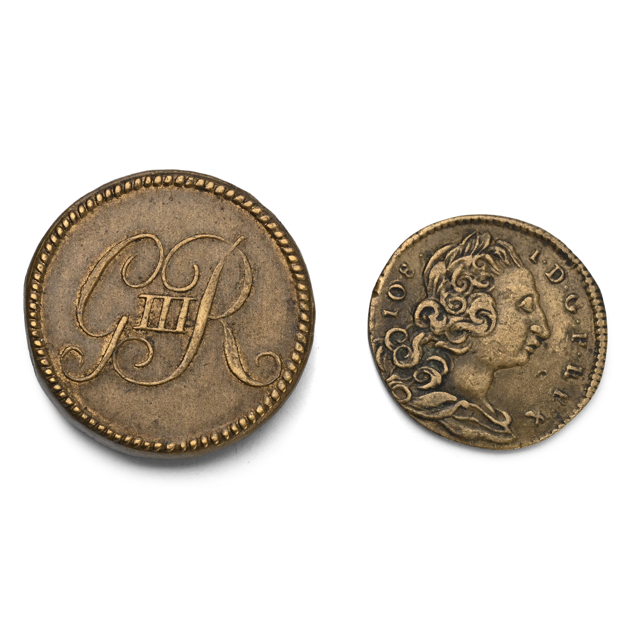 Group of Two [2] George III AE Coin Weights. 1760-1820.