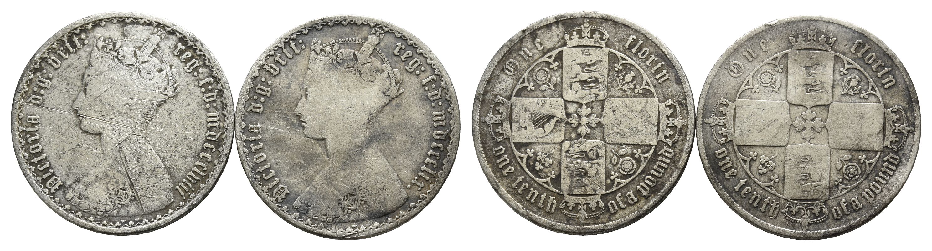 Group of Two [2] Great Britain, Victoria AR Gothic Florins. 1837-1901.