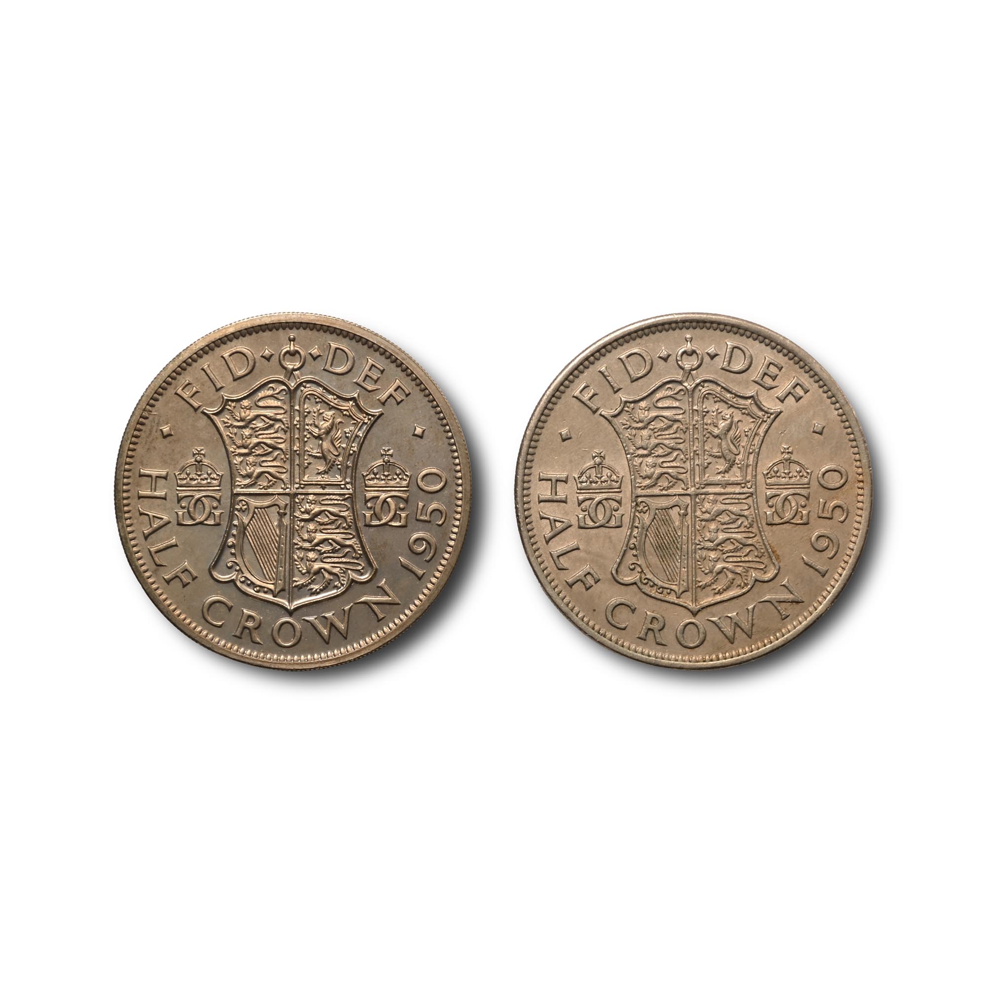 Comprising: two Third Coinage George VI Halfcrowns both dated 1950. SCBC 4106. 28.33gr total, 32mm