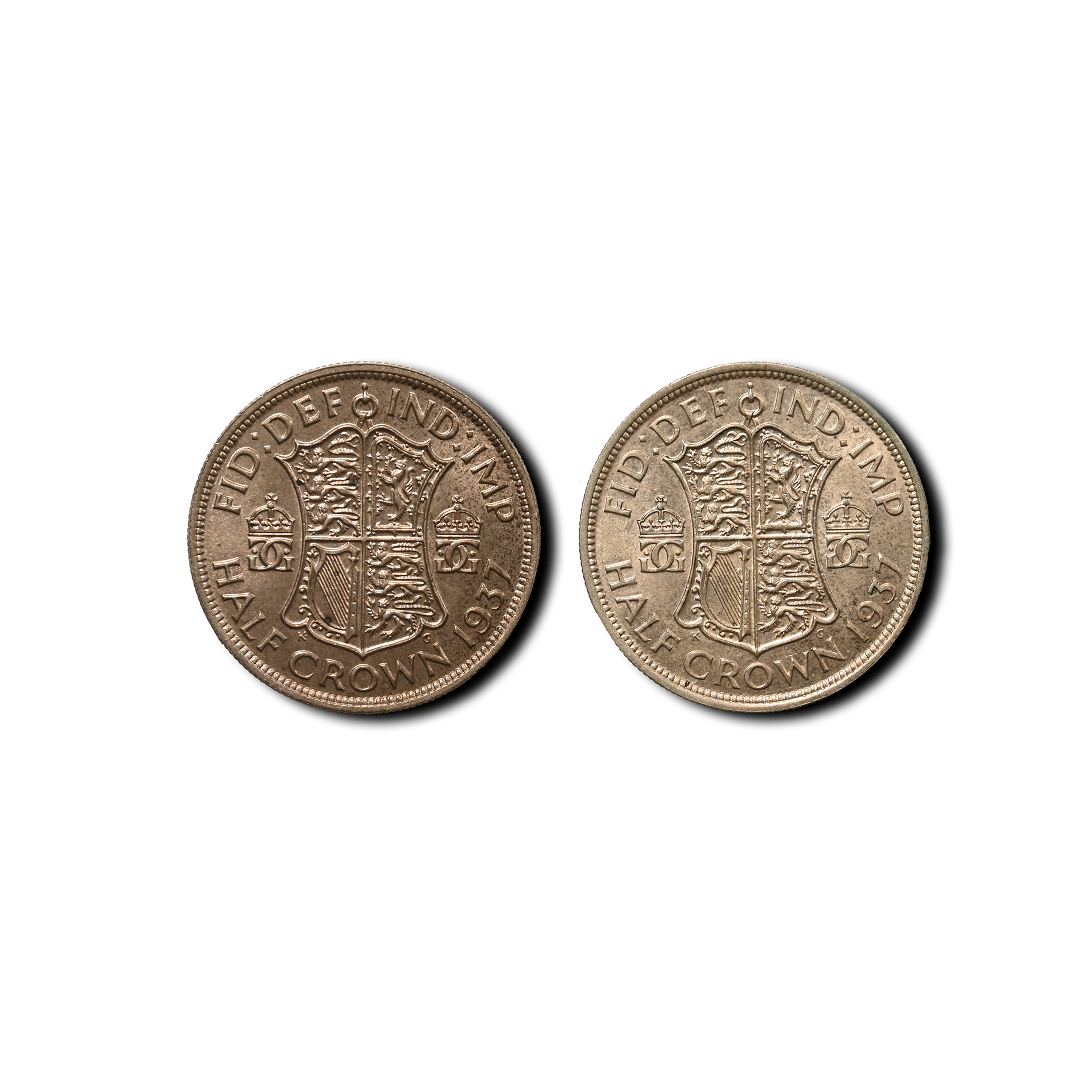 Comprising: two George VI Halfcrowns both dated 1937. SCBC 4080. 28.26gr total, 32mm