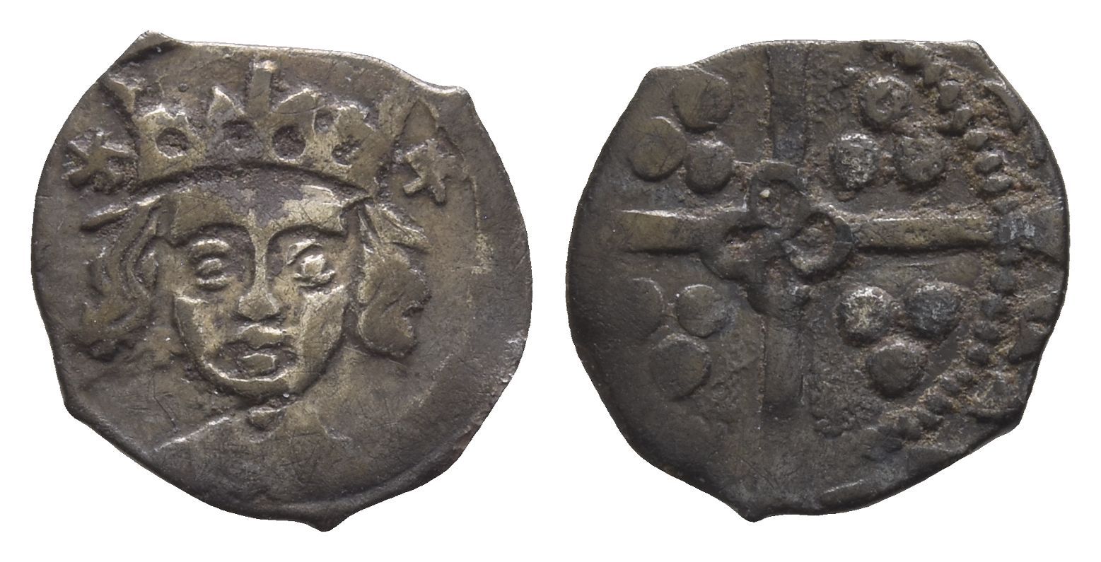 Crowned facing bust; mullets flanking crown / Long cross; quatrefoil in centre, trefoil in each quarter. SCBI 22 (Copenhagen) -; SCBC 6367. 0.56gr, 13mm.