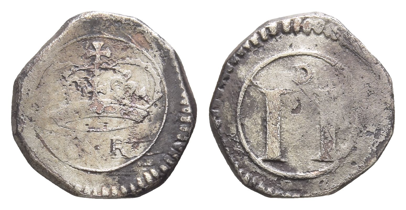 Large II, small D variety. Crowned C • R within concentric linear and beaded circles / Large II (mark of value), D above; all within concentric linear and beaded circles. Aquilla Smith, 'On the Ormonde Money.' PRSAI (1854), fig. 18; D&F 312; SCBC 6550. 0.93gr, 13mm, 12h.