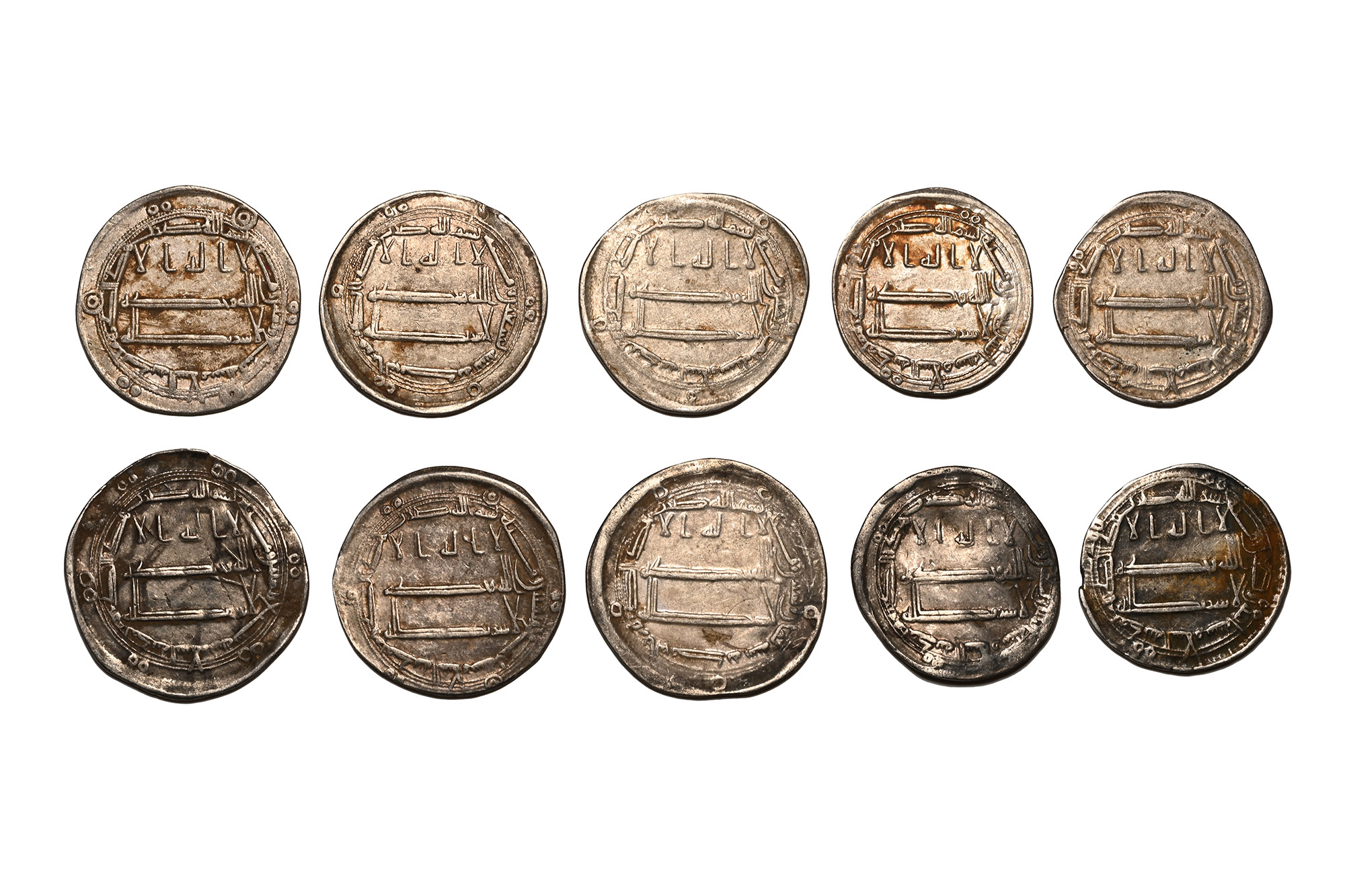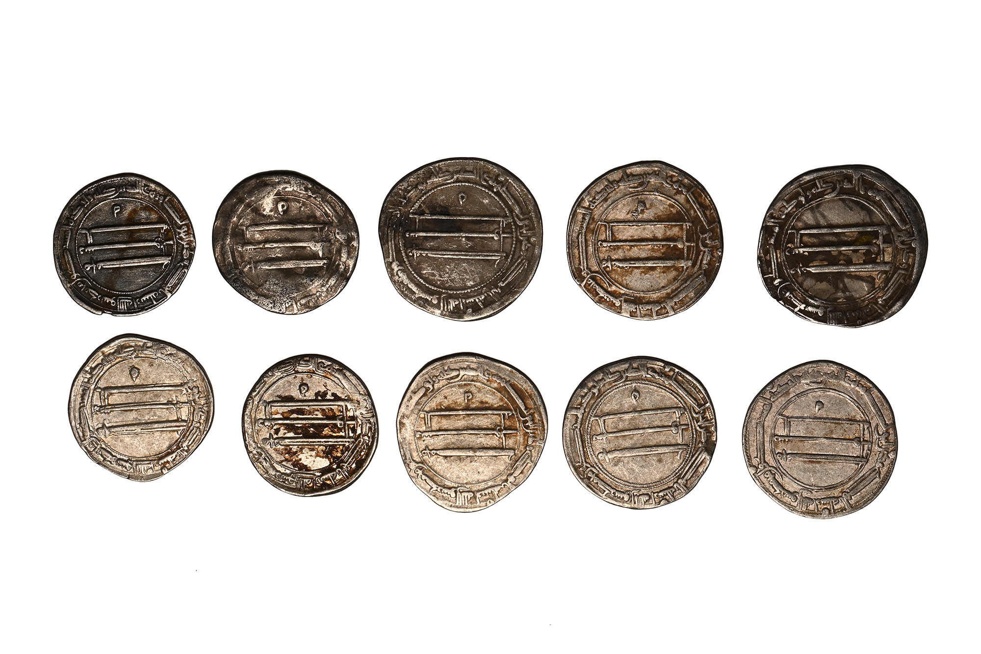Ten silver Dirhams of the Abbasid dynasty. 29.24gr total