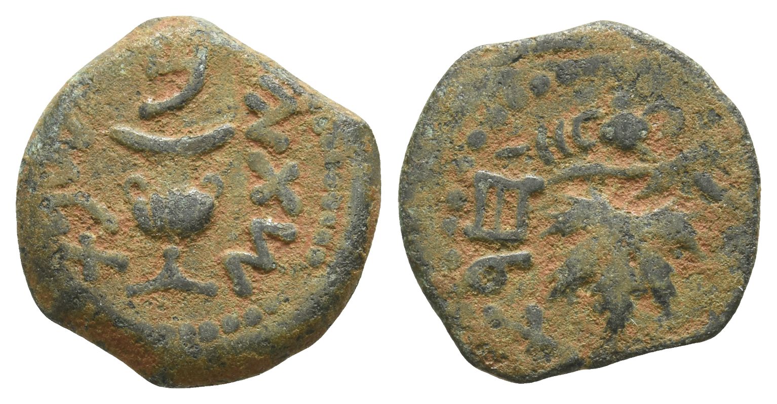 Judaea. First Jewish War AE Prutah. Dated Year 2 (67/8 CE). Jerusalem mint.