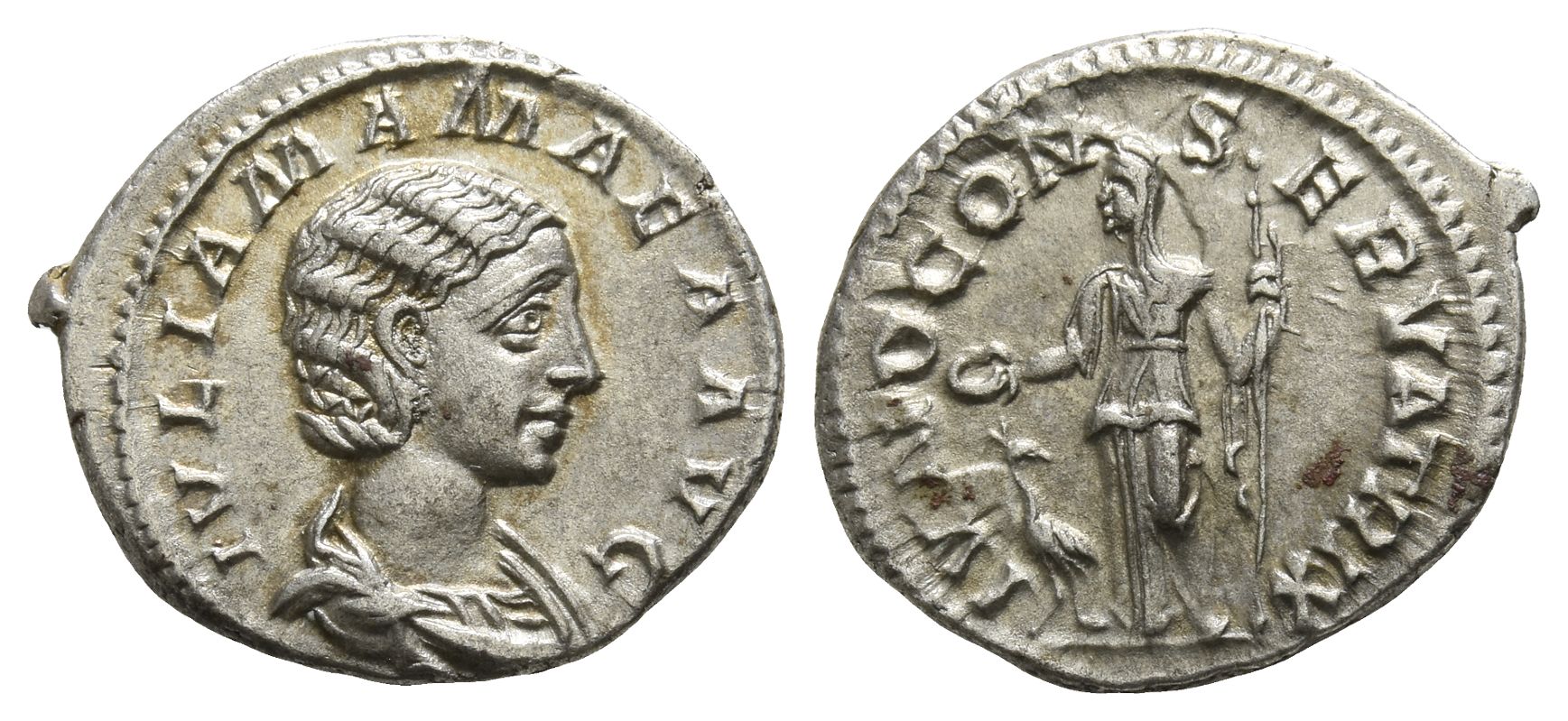 Julia Mamaea, Augusta AR Denarius. 1st emission of Severus Alexander, early AD 222. Rome mint.