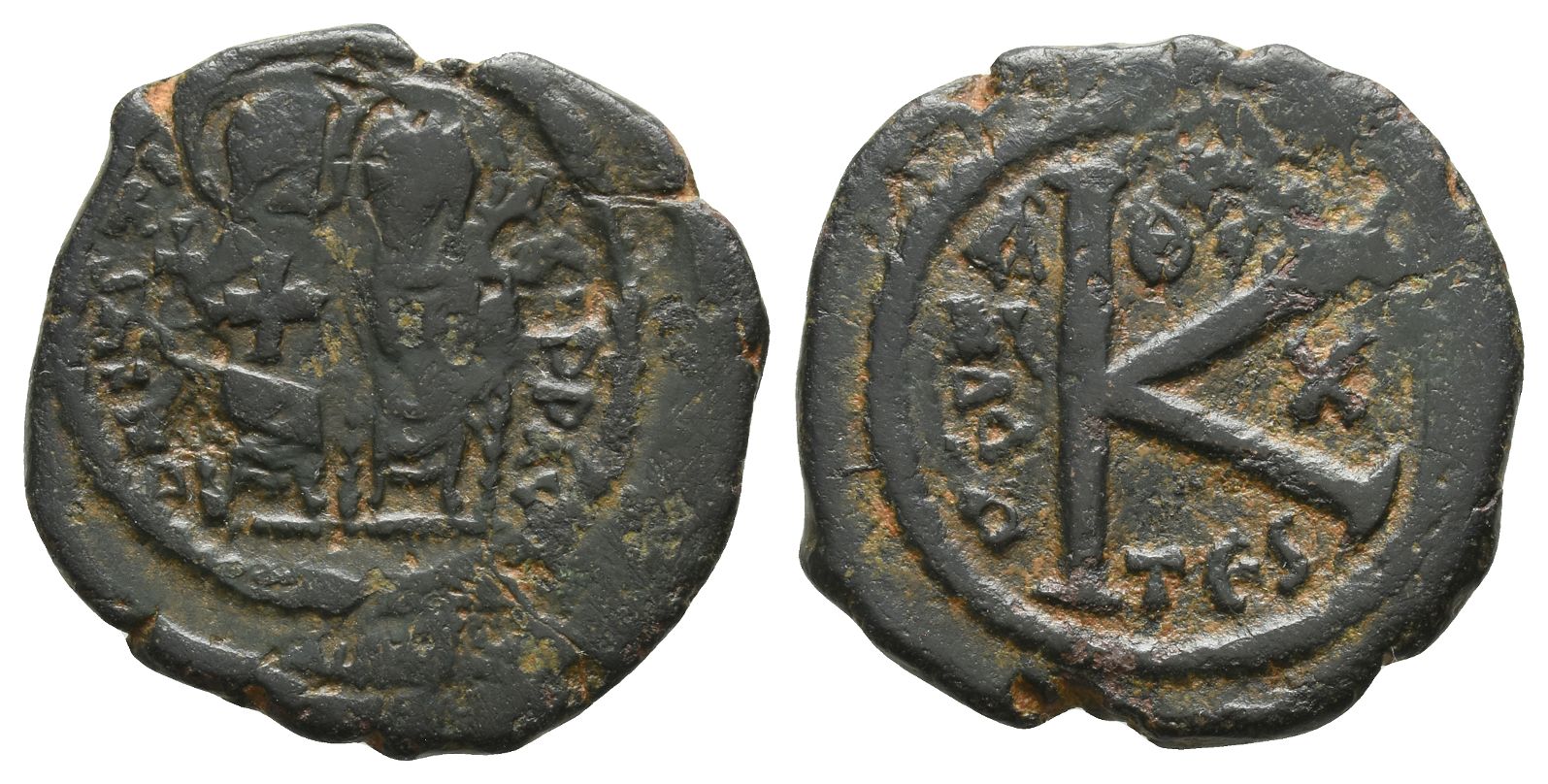 Justin II and Sophia AE Half Follis. AD 565-578.