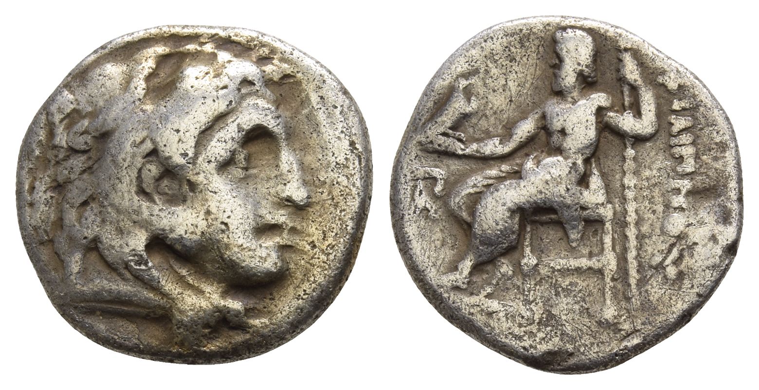 Kingdom of Macedon, Philip III Arrhidaios AR Drachm. Struck under Menander or Kleitos, circa 322-319 BC. Kolophon mint. In the types of Alexander III.