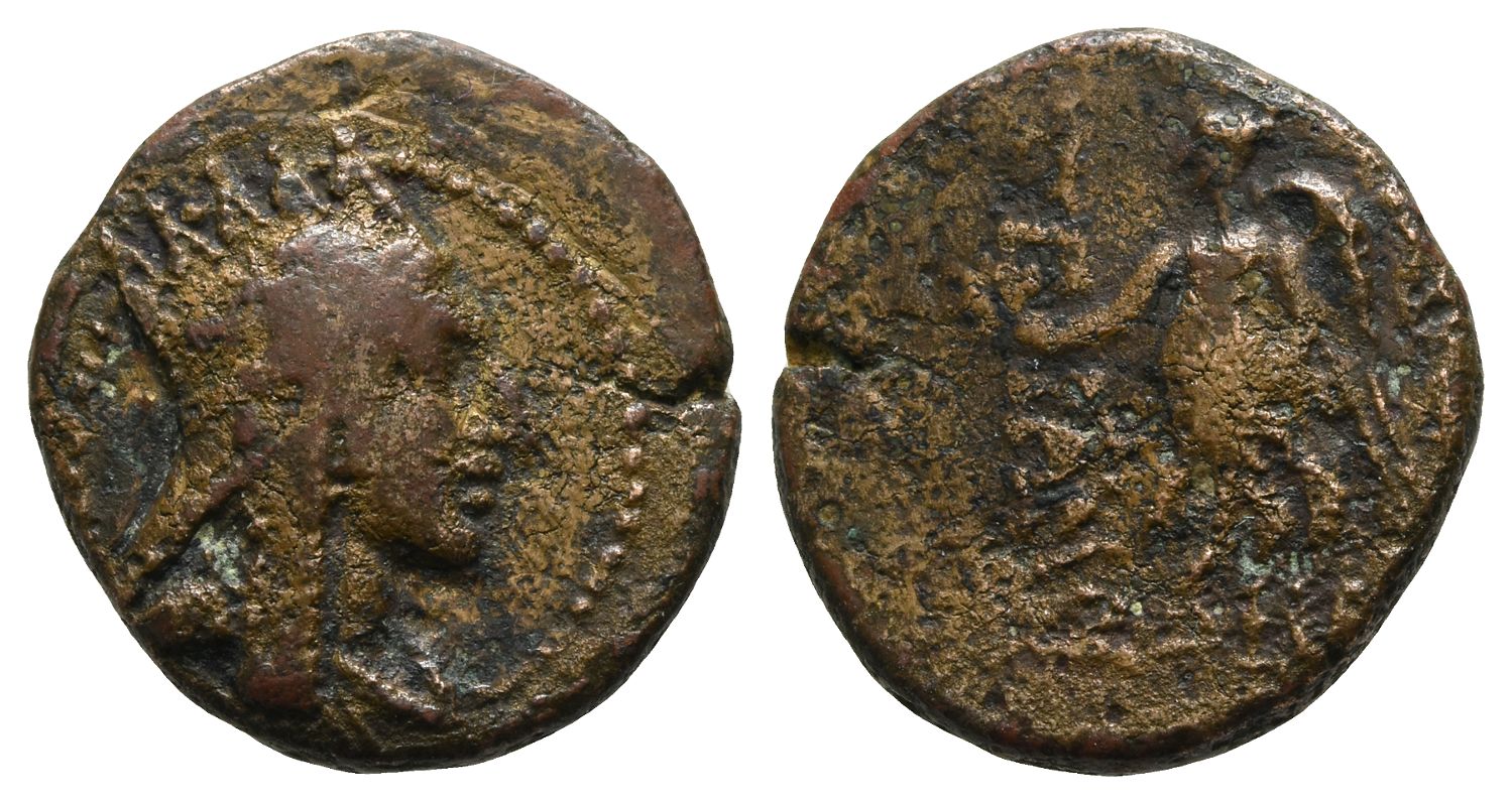 Tigranokerta(?) or Artagigarta mint; struck 66-65 BC. Diademed head to right, wearing five-pointed Armenian tiara decorated with comet / [BAΣIΛEΩΣ] TIΓ-PANOY, Nike advancing to left, holding wreath with her extended right hand; ΔHM[O] below. ACV 78; CAA 114; Kovacs 143. 5.57gr, 19mm, 12h.
