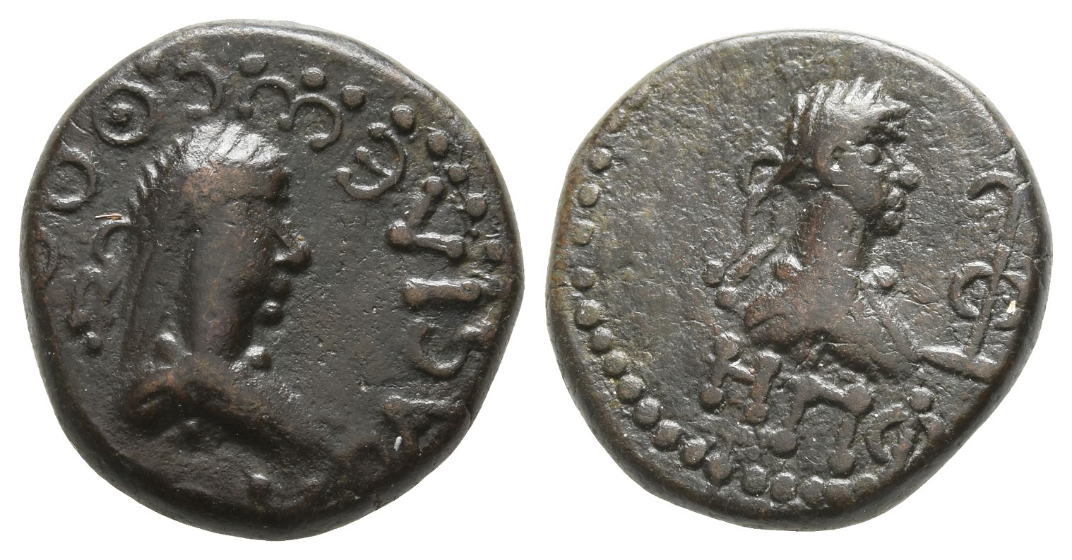 BACIΛЄധC ⵙOⵙ[ധPCOV], diademed bust to right / Laurate bust to right, tamgha of Thothorses in right field, ΗΠΦ (date) below. RPC X Unassigned ID 85422; MacDonald 640/2 (ΦΠH). 7.89gr, 20mm, 12h.