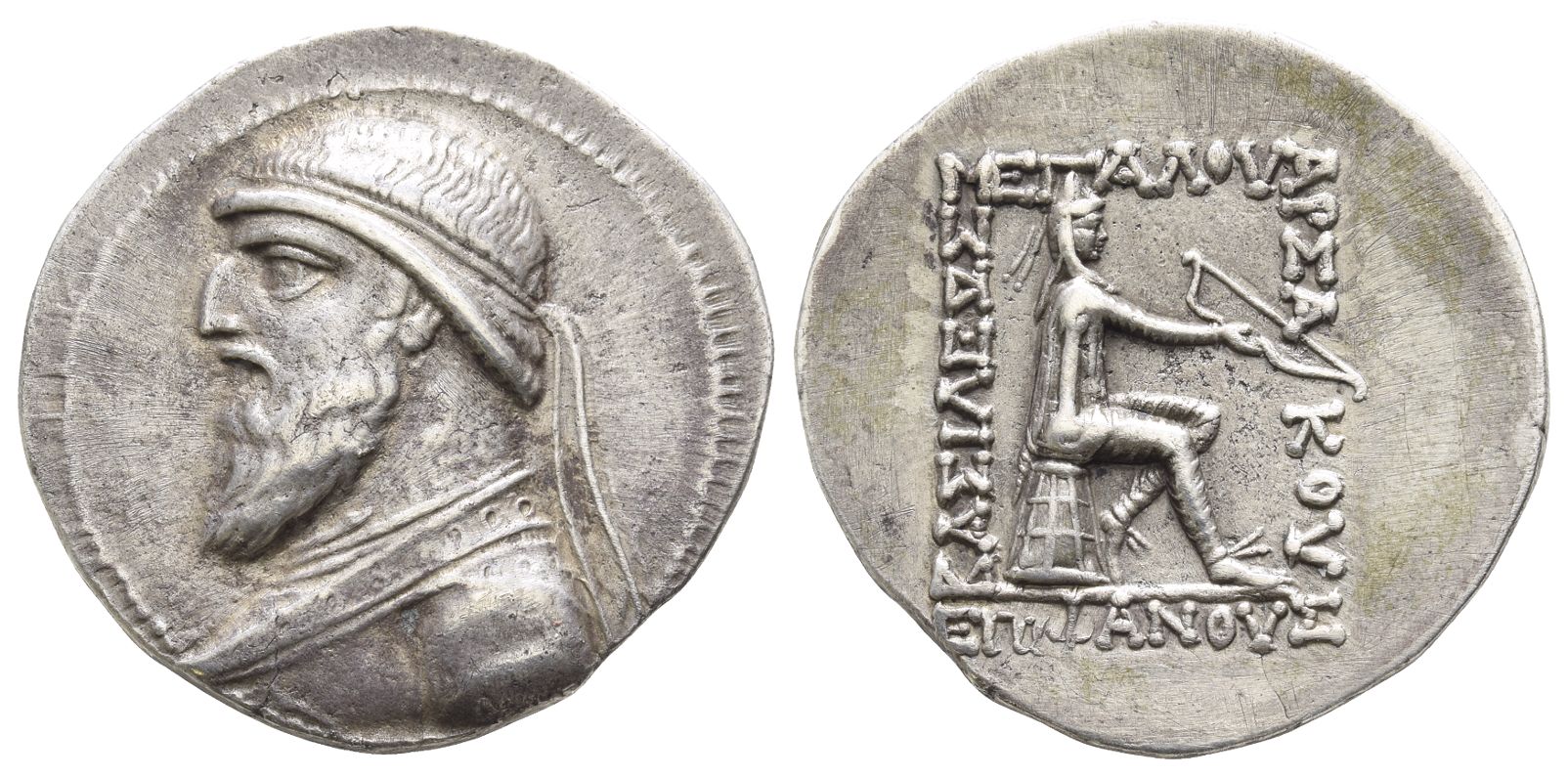 Kings of Parthia, Mithradates II AR Tetradrachm. 121-91 BC. Seleukeia on the Tigris mint.