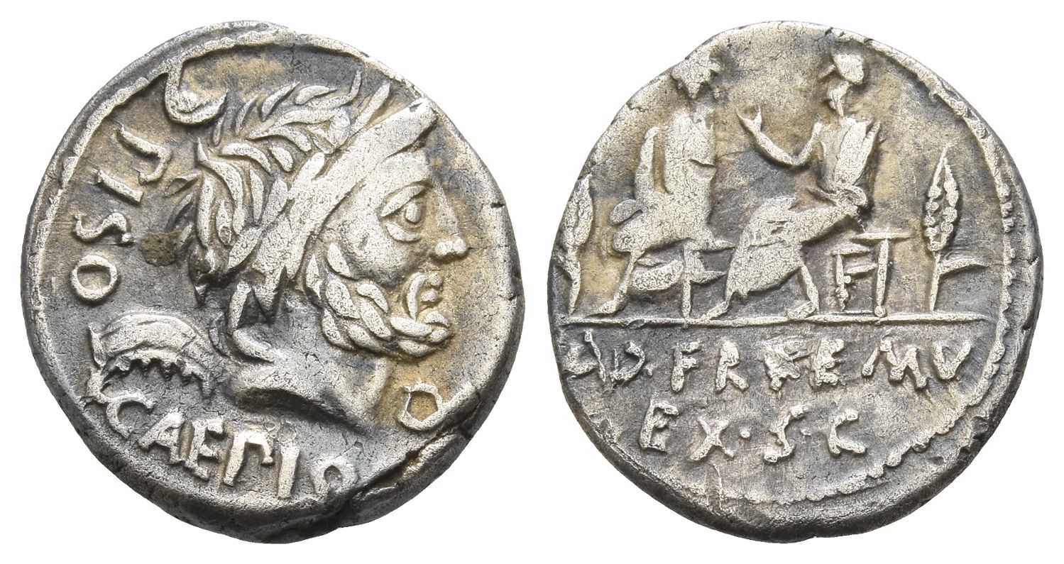 L. Calpurnius Piso Caesoninus and Q. Servilius Caepio AR Denarius. 100 BC. Rome mint.