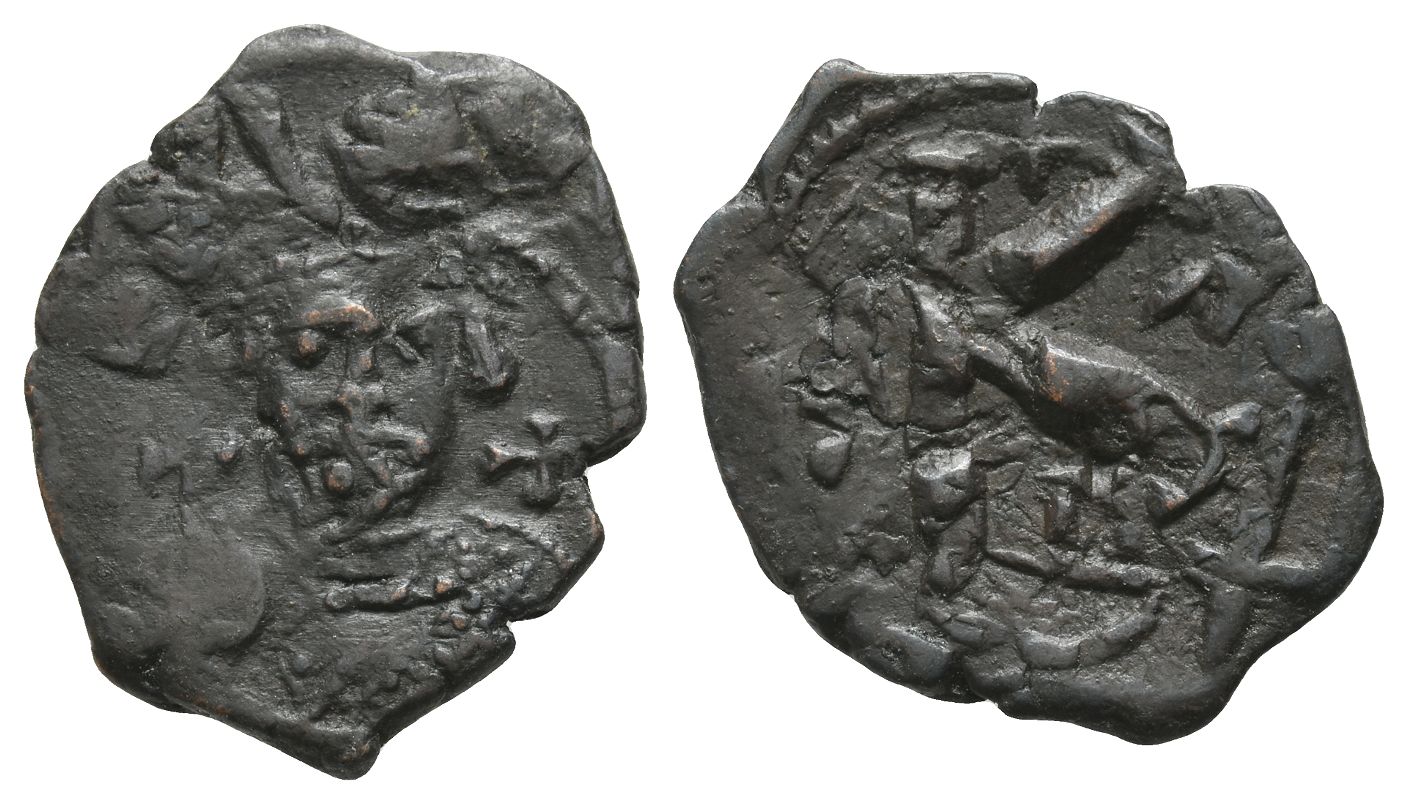 Leontius AE 20 Nummi of Half Follis. AD 695-698.
