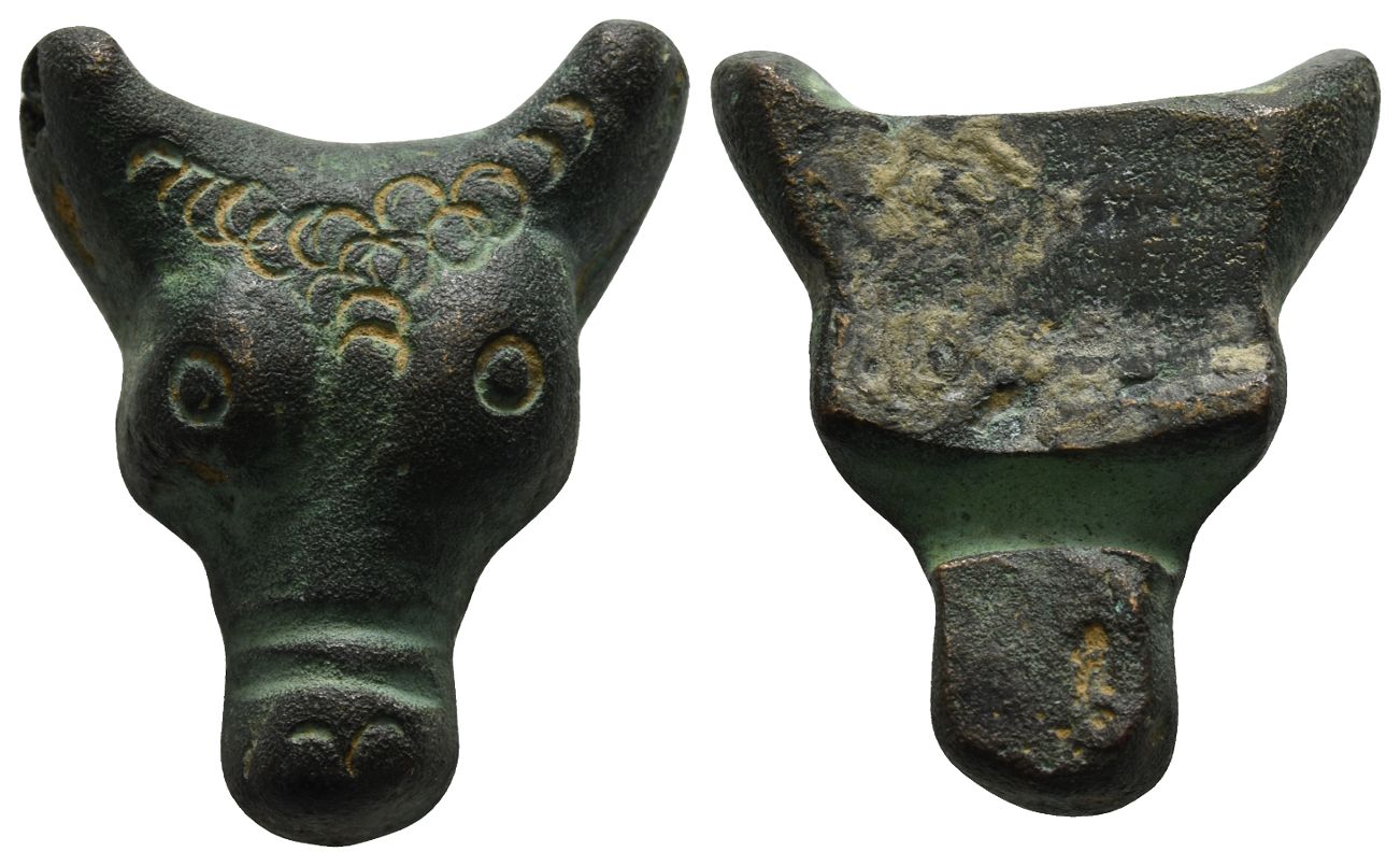 Bronze weight in the shape of a bull's head; groove on base. Cf. Münz Zentrum, Auktion XLIX, Teil IV, 5009. 32,42gr, 29mm.