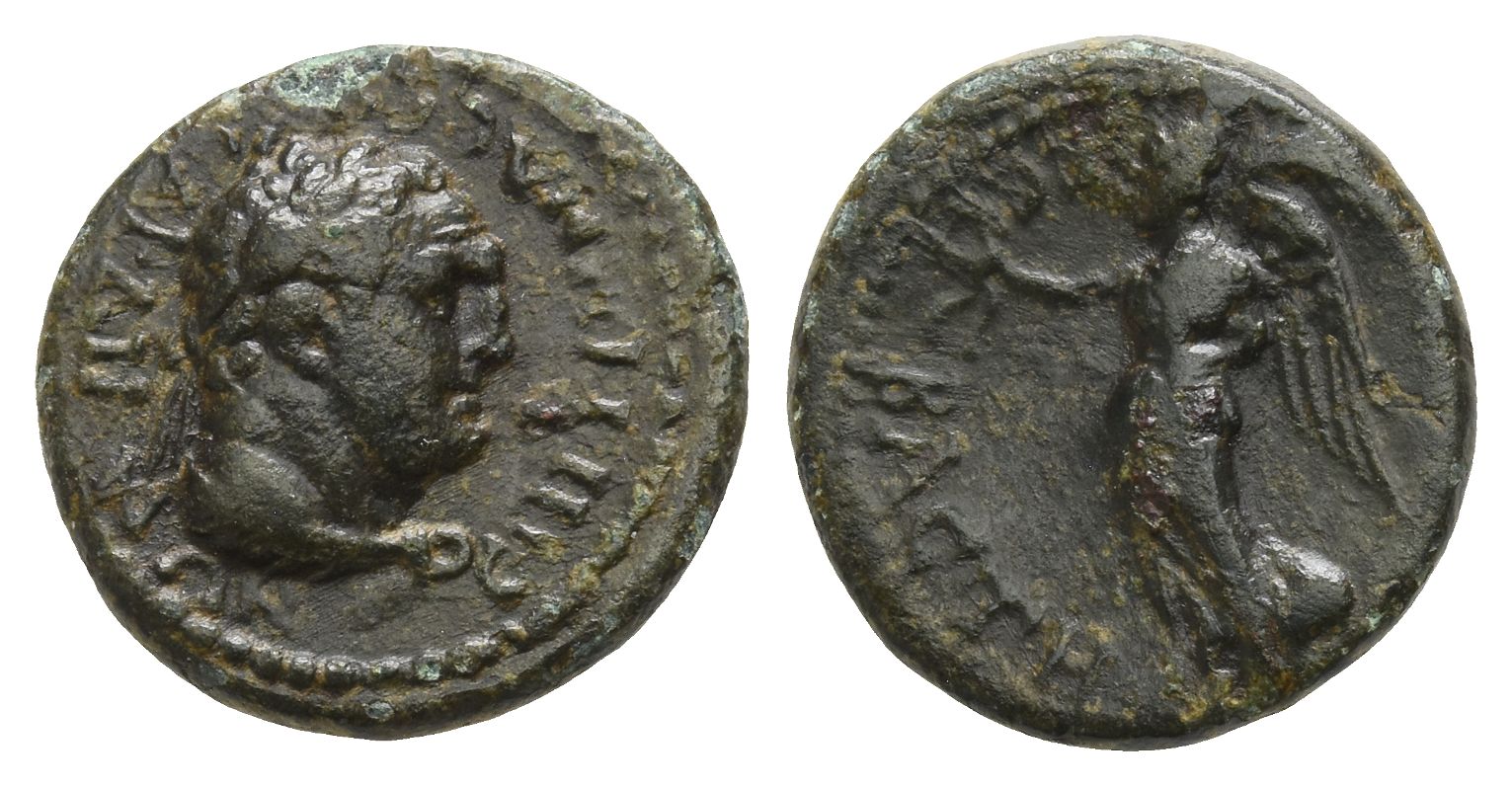 ΤΙ. ΚΛΑΥΔΙΟΣ ΜΝΑΣΕΑΣ (Ti. Claudius Mnaseas), strategos. Struck circa AD 65. Pseudo-autonomous issue. ЄΠI TI MNACЄOY CAPΔIANΩN, laurate head of Herakles to right, with lion's skin draped around his neck / CЄΒΑCΤΗ, Nike standing to left, holding wreath in right hand and palm branch in left. RPC I 3010; GRPC Lydia 264; SNG Copenhagen 504. 2.23gr, 15mm, 10h.