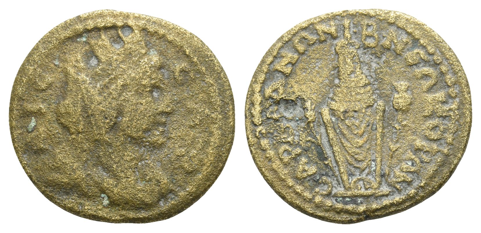 ϹΑΡ-ΔΙϹ, turreted, veiled and draped bust of Tyche to right / CΑΡΔIANΩN • Β • NЄΩKOΡΩΝ, facing statue of Kore of Sardes; grain ear to left, poppy to right. RPC V.2 Unassigned ID 74062; GRPC Lydia 330. 3.55gr, 19mm, 6h.