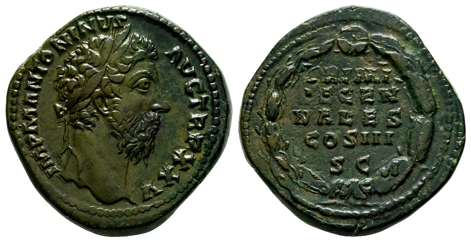 IMP M ANTONINVS AVG TR P XXV, laureate head to right / PRIMI DECENNALES COS III S C in five lines within oak wreath. RIC III 1006; BMCRE 1398; Banti 241. 27.15gr, 32mm, 6h.