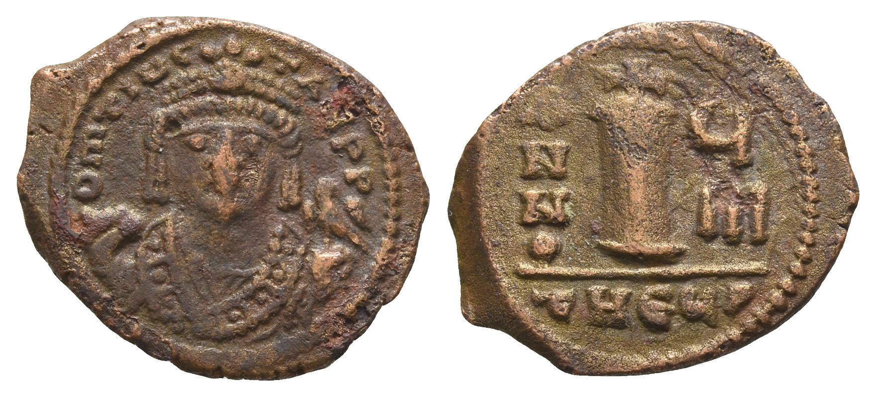 Back to previous pageMaurice Tiberius AE 10 Nummi or Decanummium. Dated RY 8 (AD 589/90). Theoupolis (Antioch) mint.