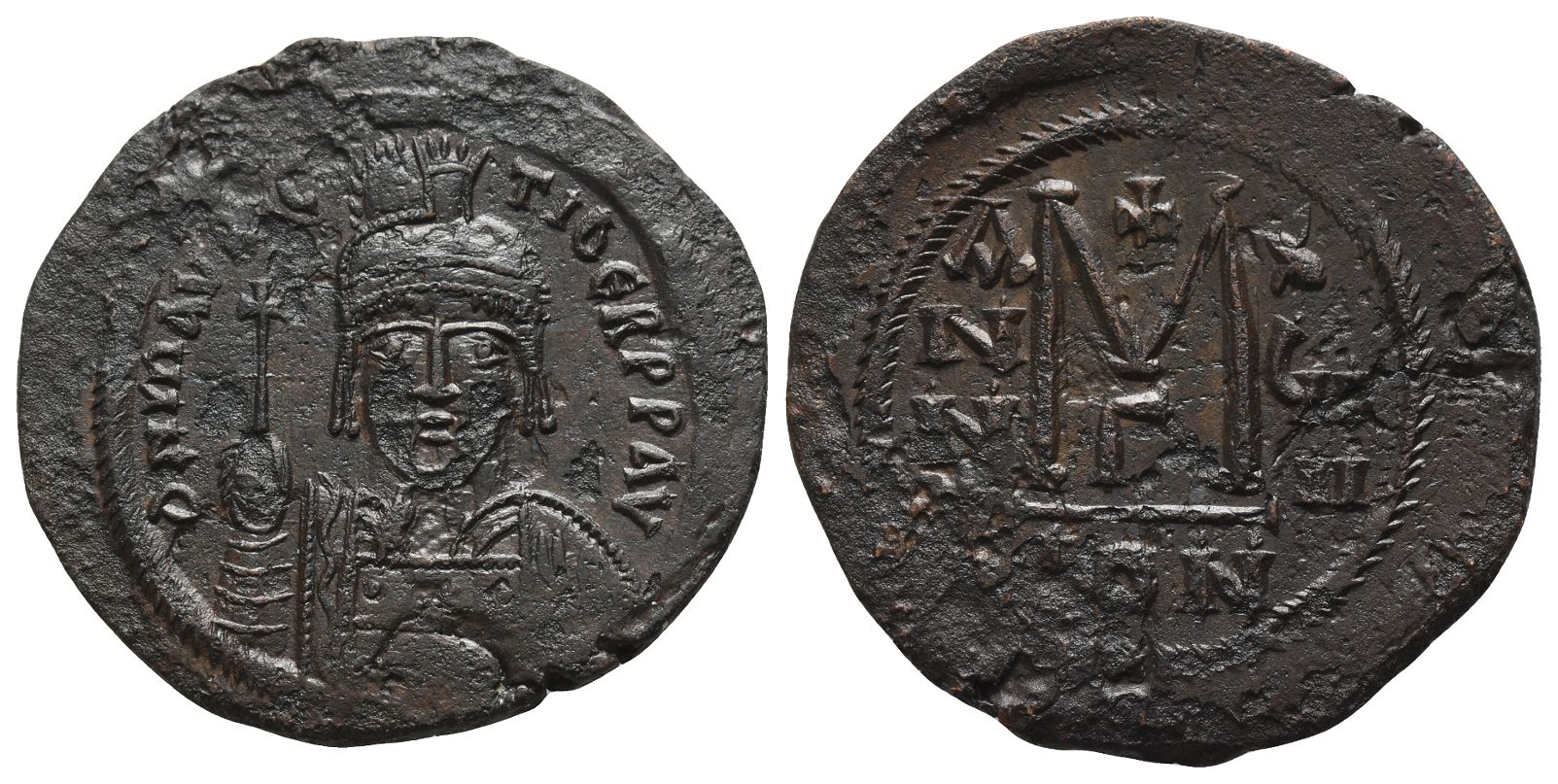 Maurice Tiberius AE 40 Nummi or Follis. AD 582-602.