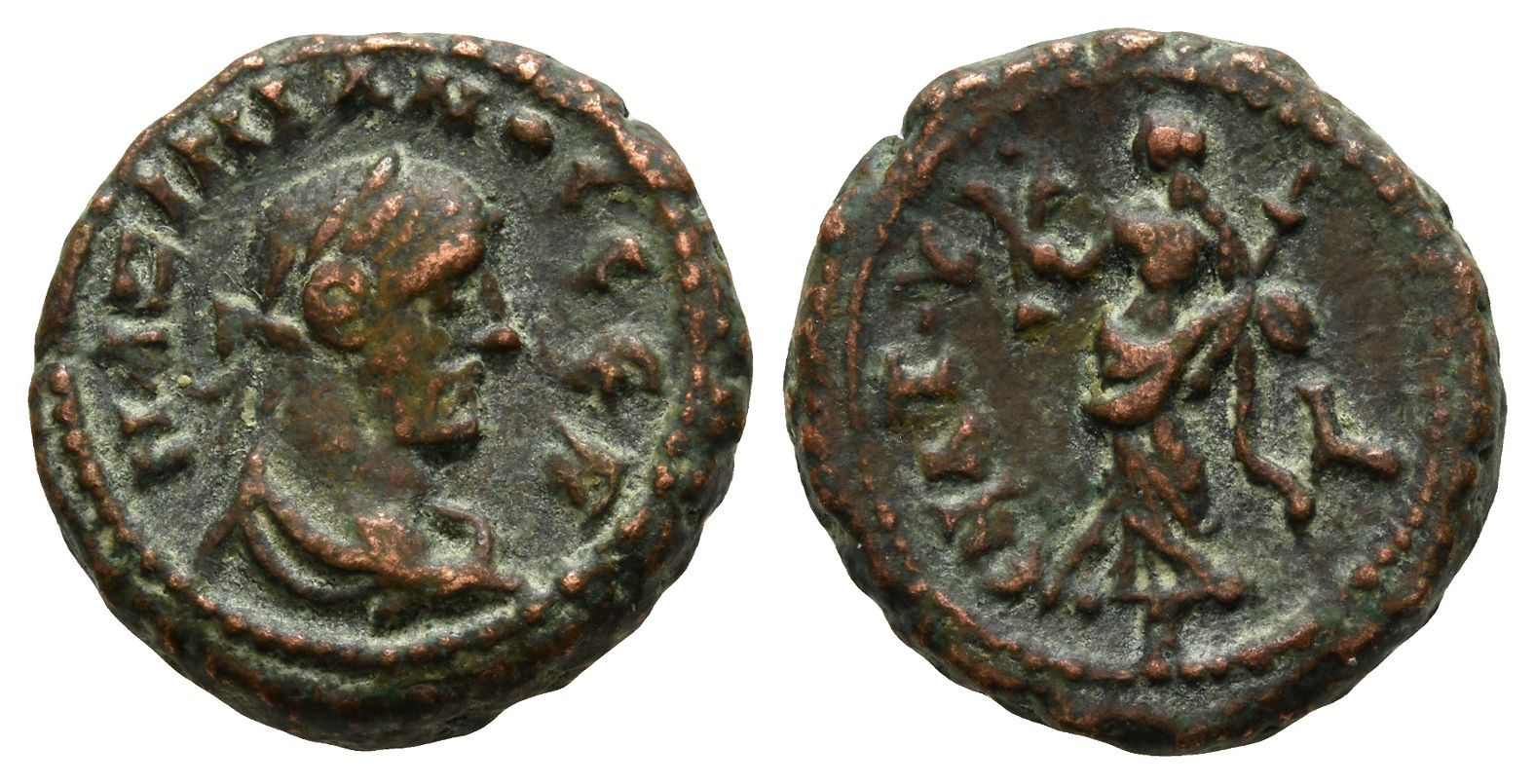 Dated RY 9 (AD 293/4). ΜΑΞΙΜΙΑΝΟϹ ϹЄΒ, laureate, draped and cuirassed bust to right / L ENATOV (date), Eirene standing facing, head to left, holding olive branch and transverse sceptre; B below. RPC X Online Unassigned ID 76569. 7.81gr, 19mm, 12h.