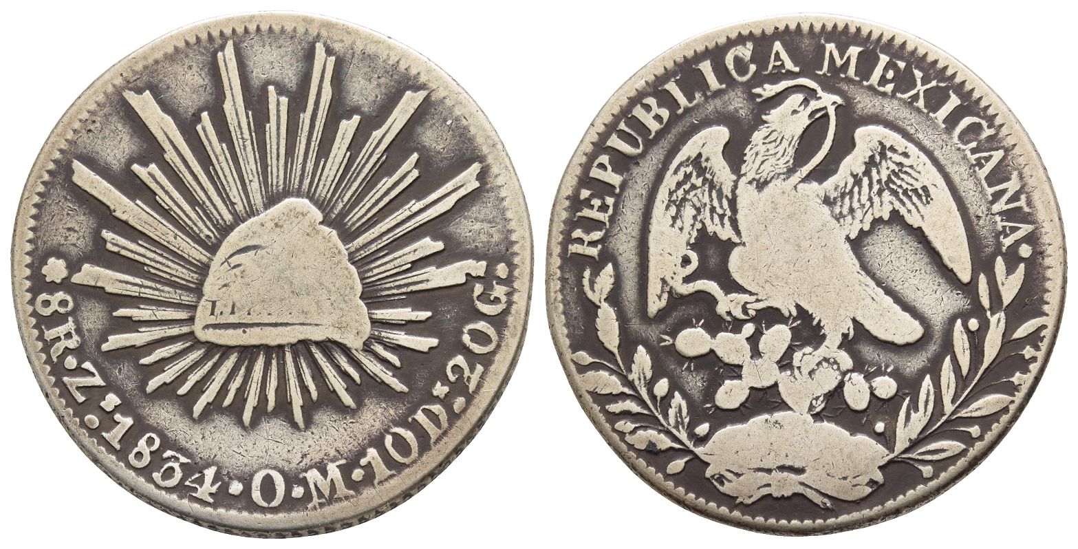 Back to previous pageMexico. Federal Republic AR 8 Reales. Dated 1834OM. Casa de Moneda de Zacatecas mint.