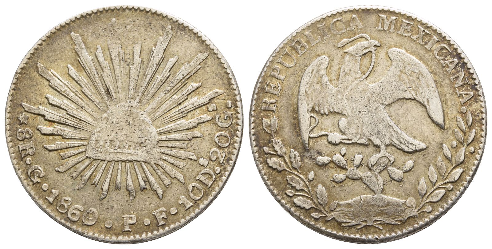 Back to previous pageMexico, Republic AR 8 Reales. Dated 1860PF. Casa de Moneda de Guanajuato mint.