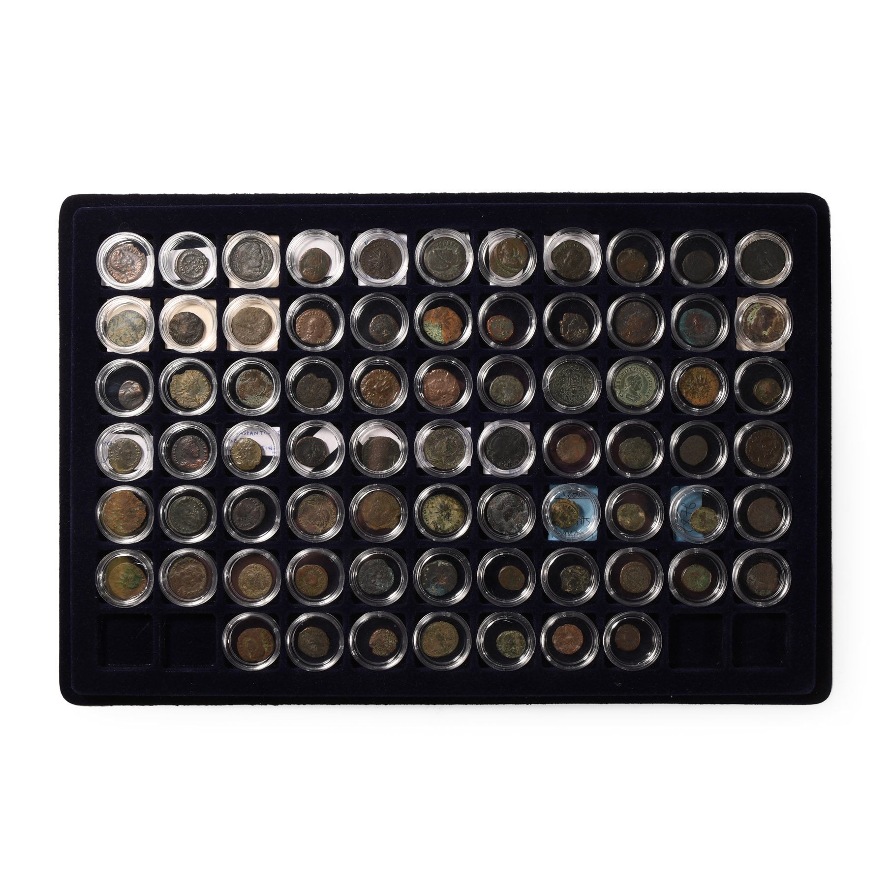 Comprising: various emperors, issues and reverse types including AE3/4s, Folles, and radiates. 380gr total including tray, 11-19mm