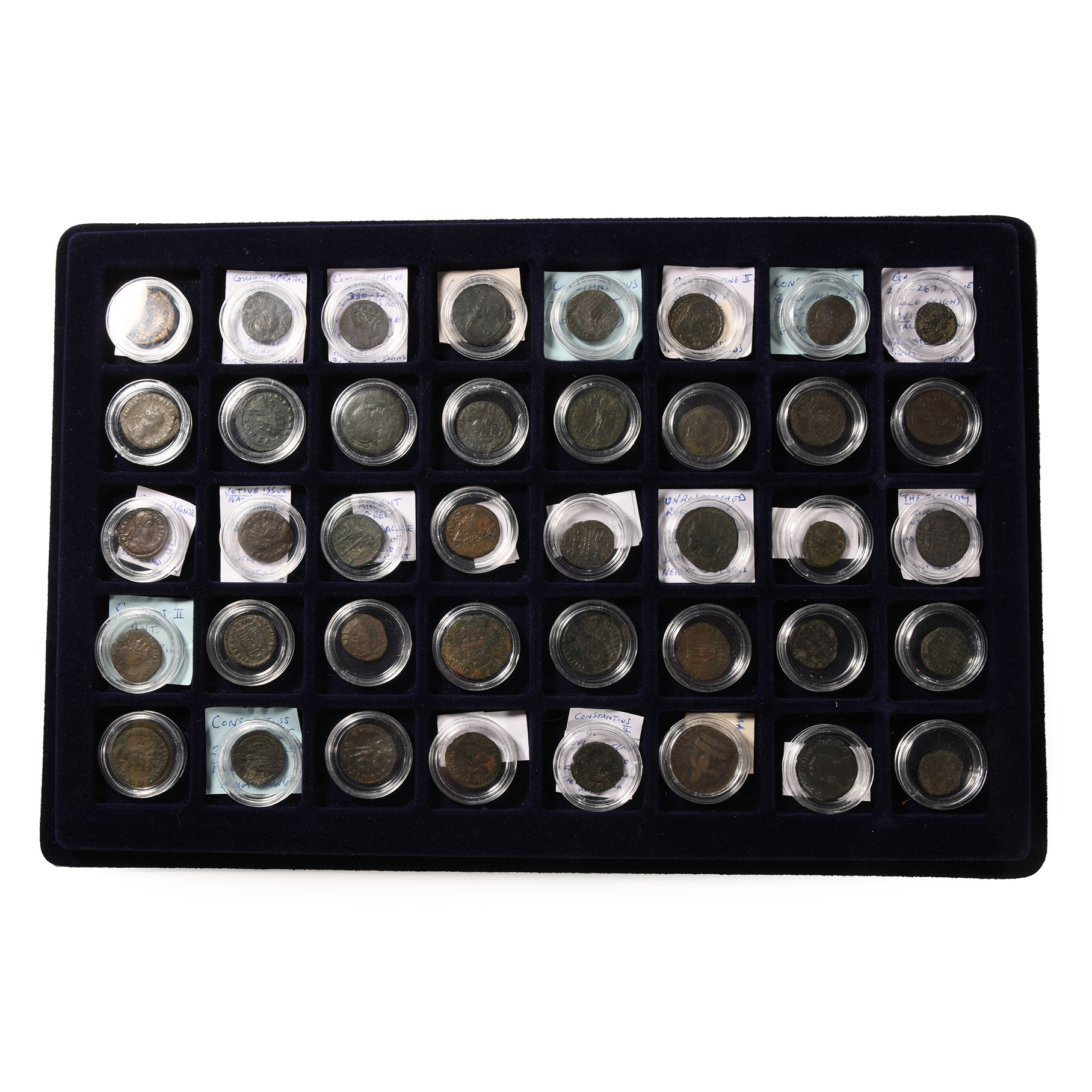 Comprising: various emperors, issues and reverse types including AE3/4s, Folles, and radiates. 353gr total including tray, 14-22mm