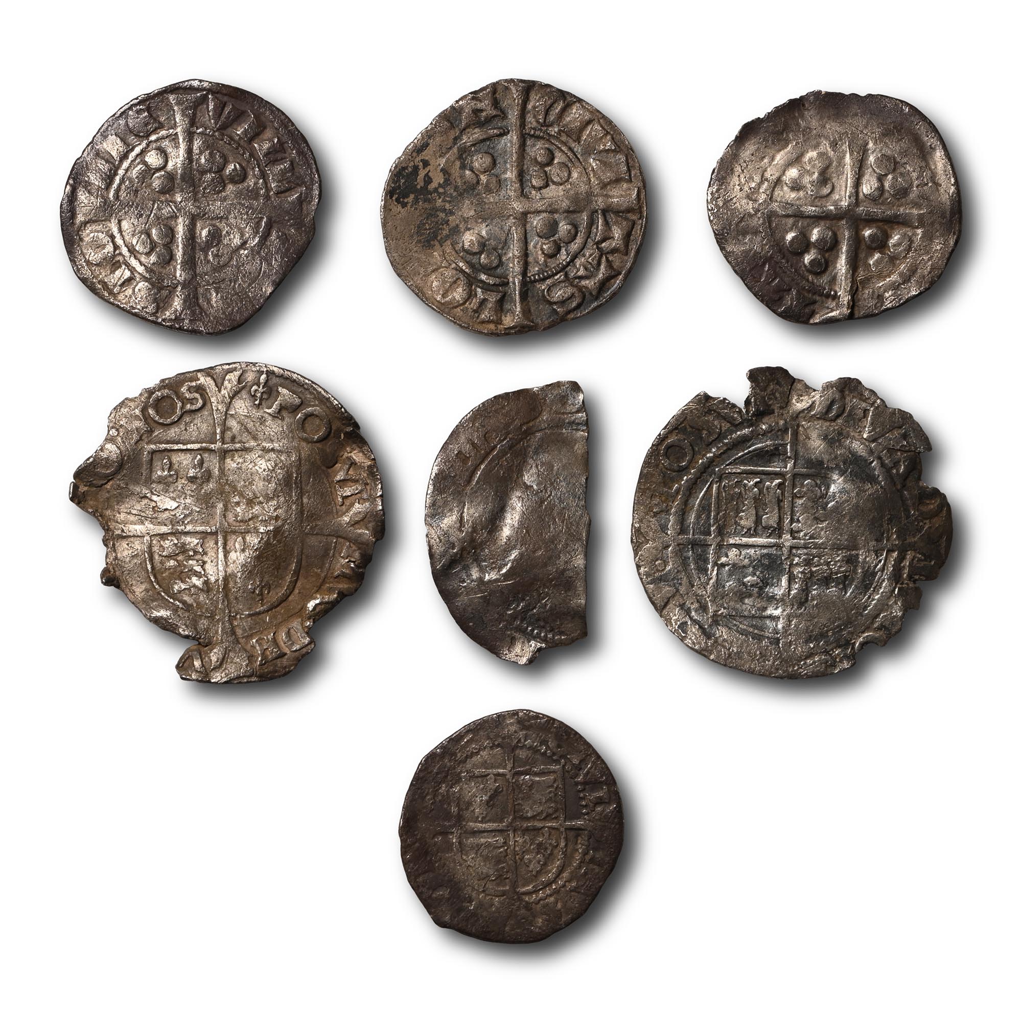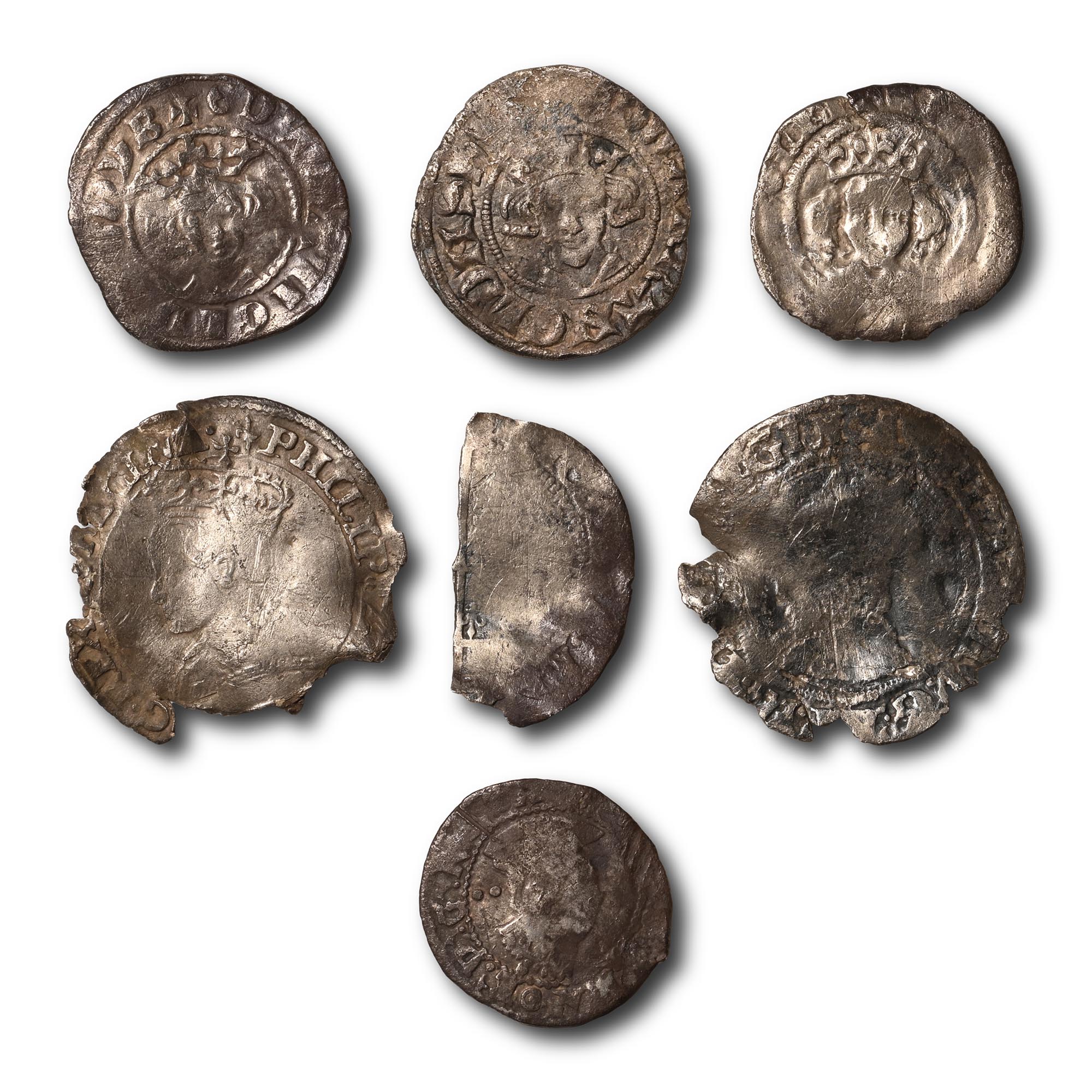 Comprising: various monarchs, denominations, issues and reverse types including a Mary Groat, Elizabeth I Sixpence and Half Groat, and Edward I Pennies. 8.69gr total, 16-23mm