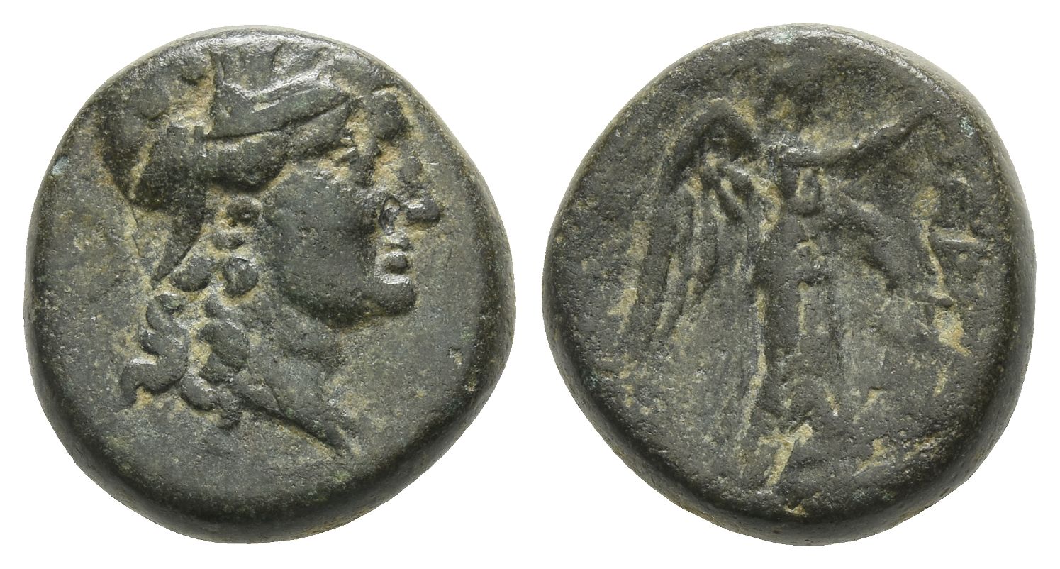 Helmetted head of Athena to right / ΠEPΓ[...], Nike standing to right, holding wreath and palm. Cf. SNG BnF 1781; cf. SNG Copenhagen 360. 5.89gr, 16mm, 12h.